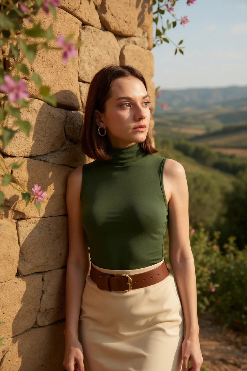 Kadın Haki Yeşili Kolsuz Balıkçı Yaka Basic Bluz