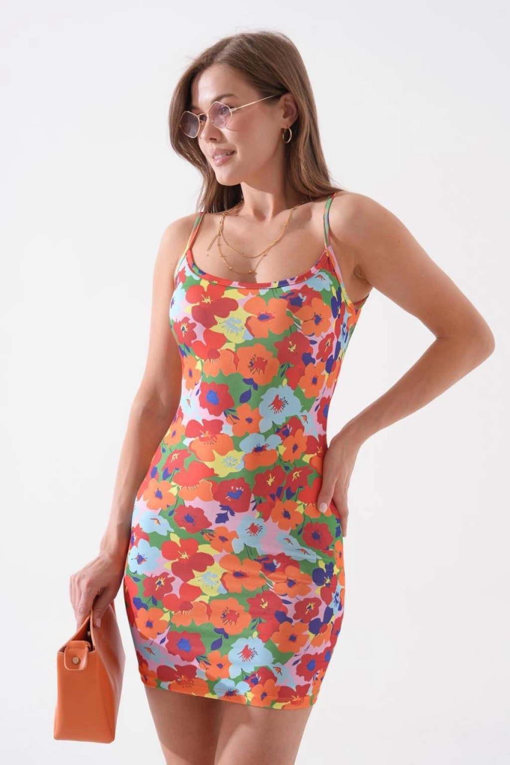 İnce çift askılı mini elbise