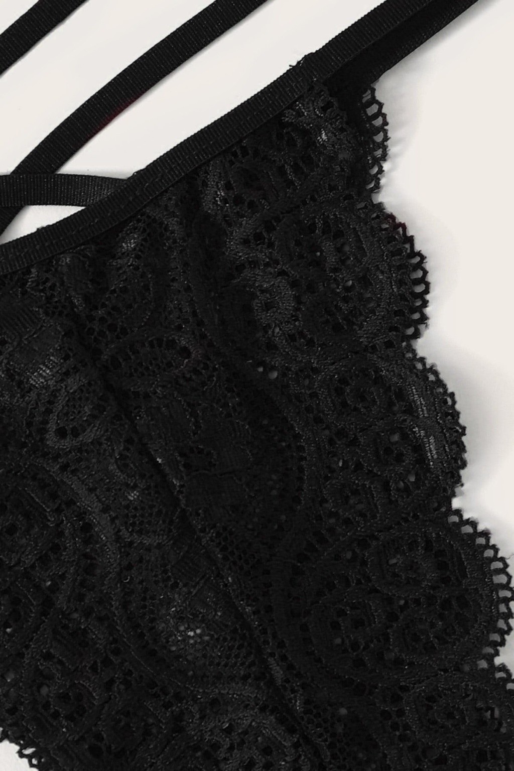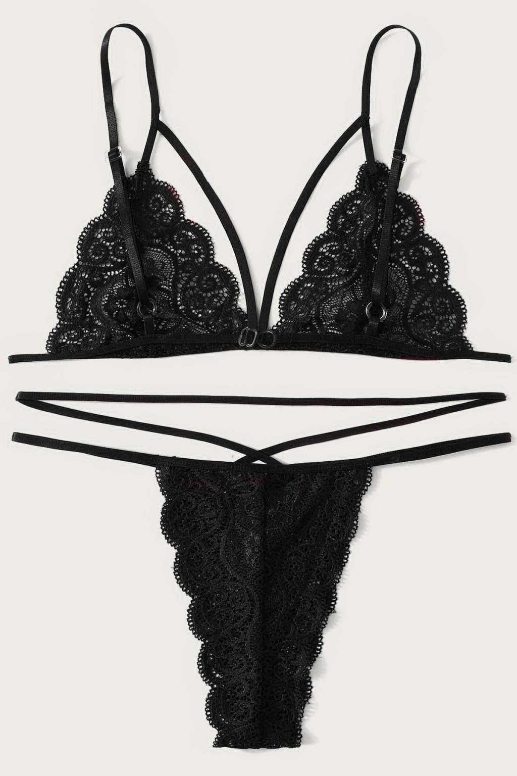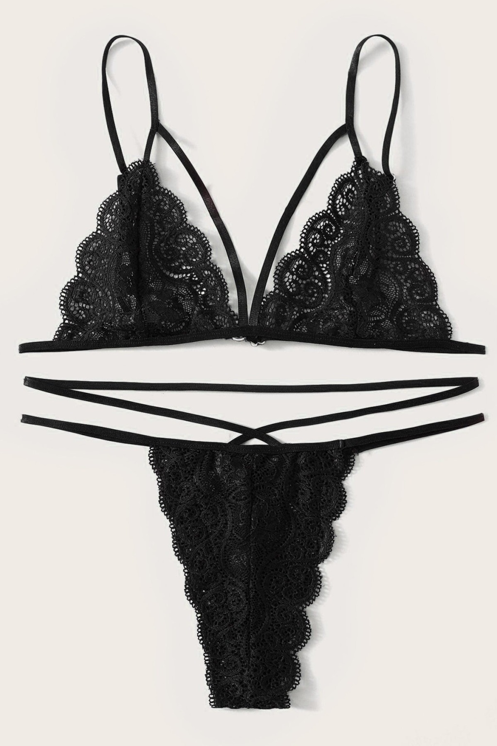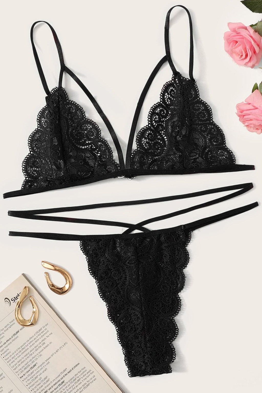 Siyah Çapraz Ip Detaylı Şık Sütyen Külot Takım