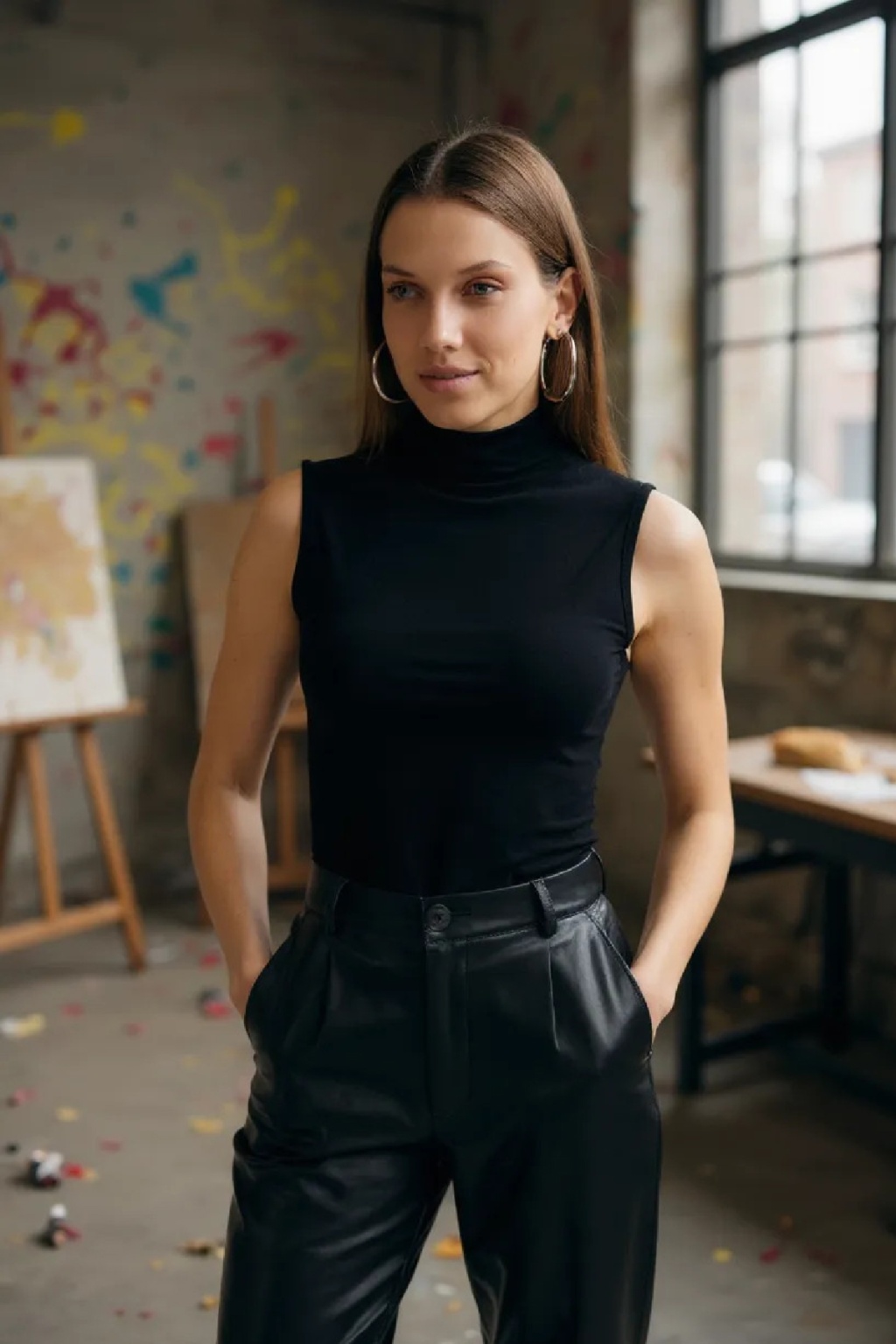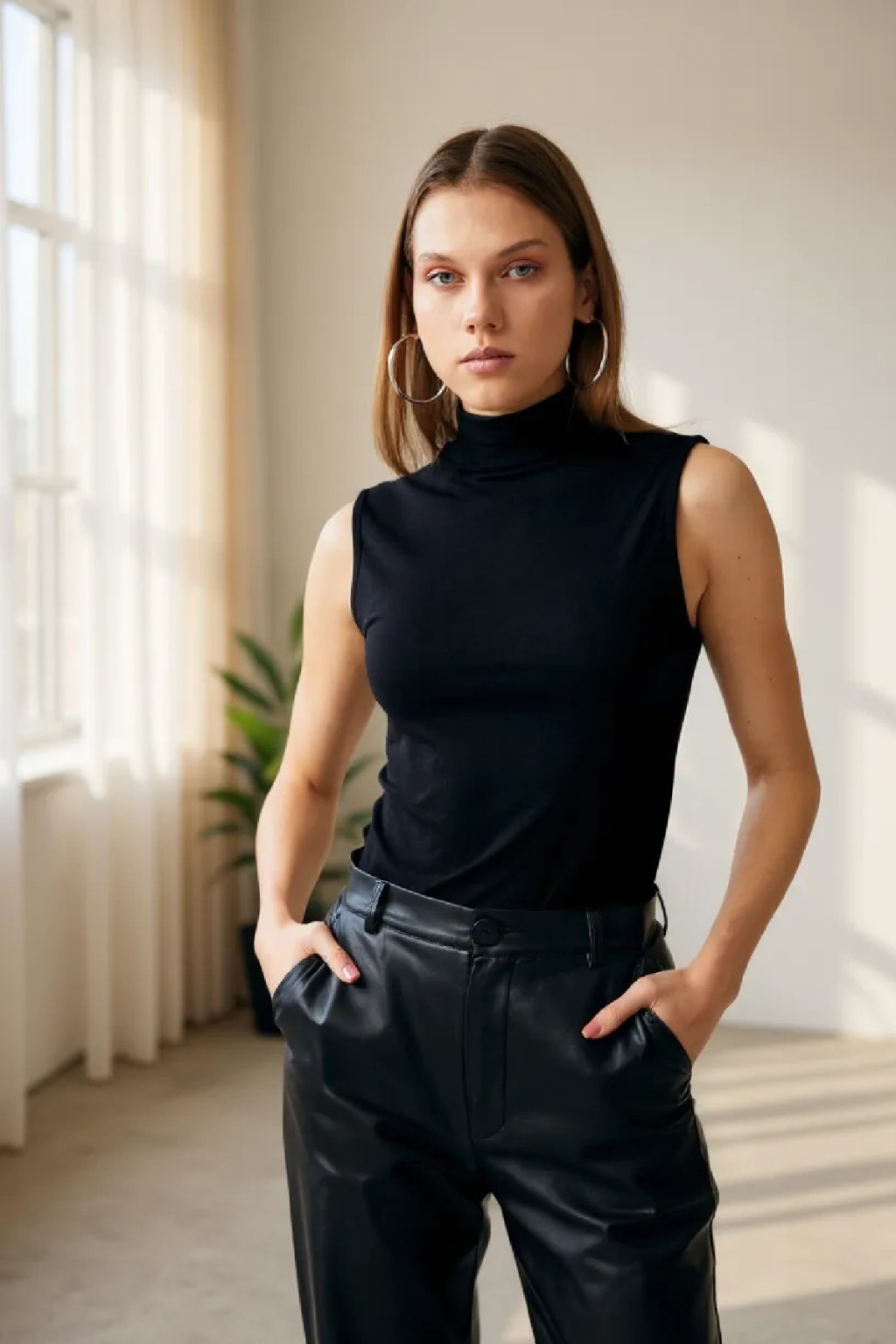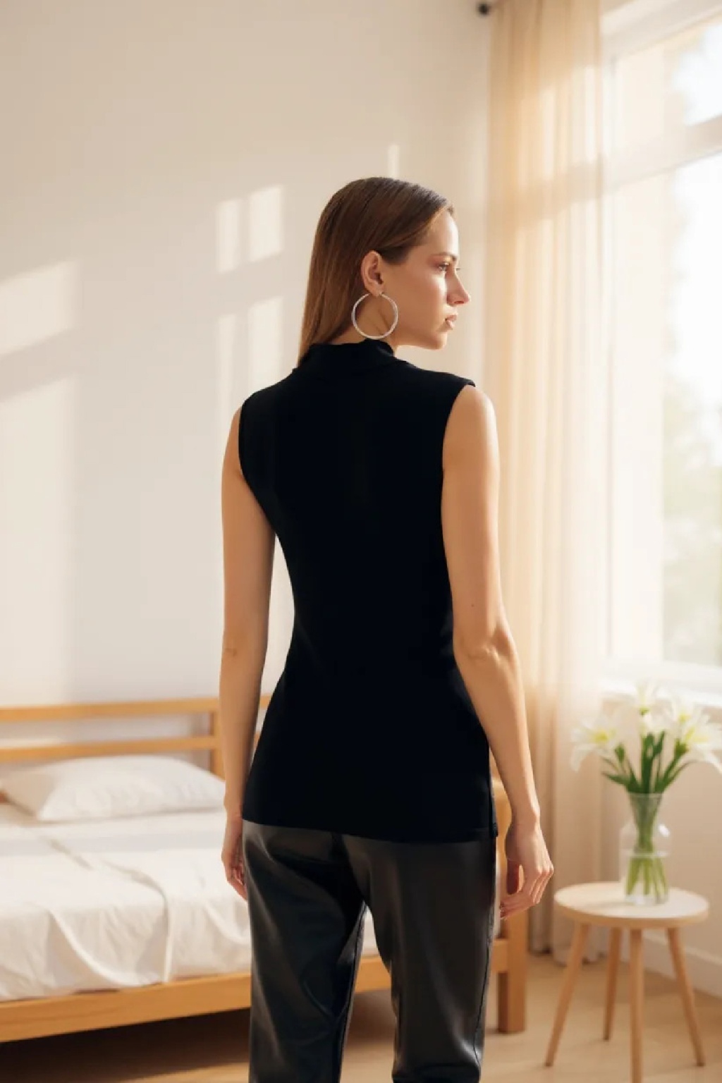 Kadın Siyah Kolsuz Balıkçı Yaka Basic Bluz