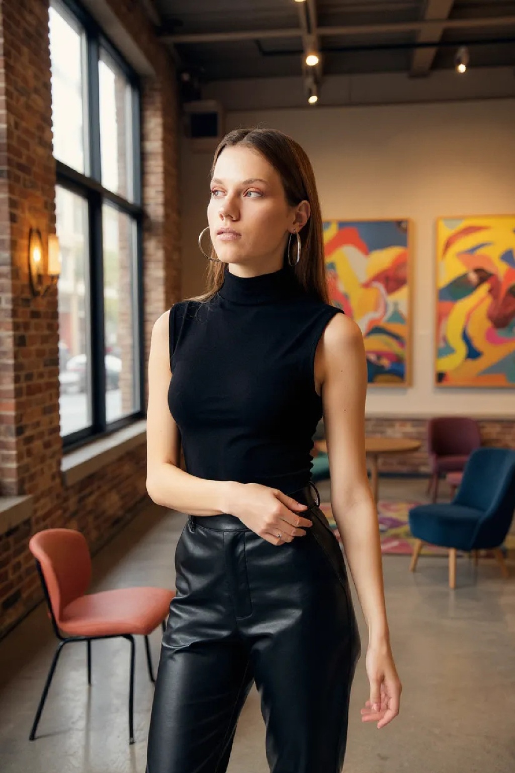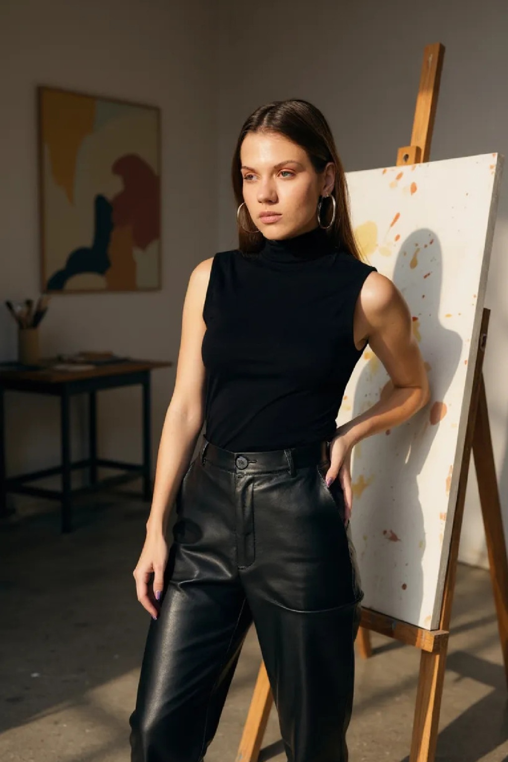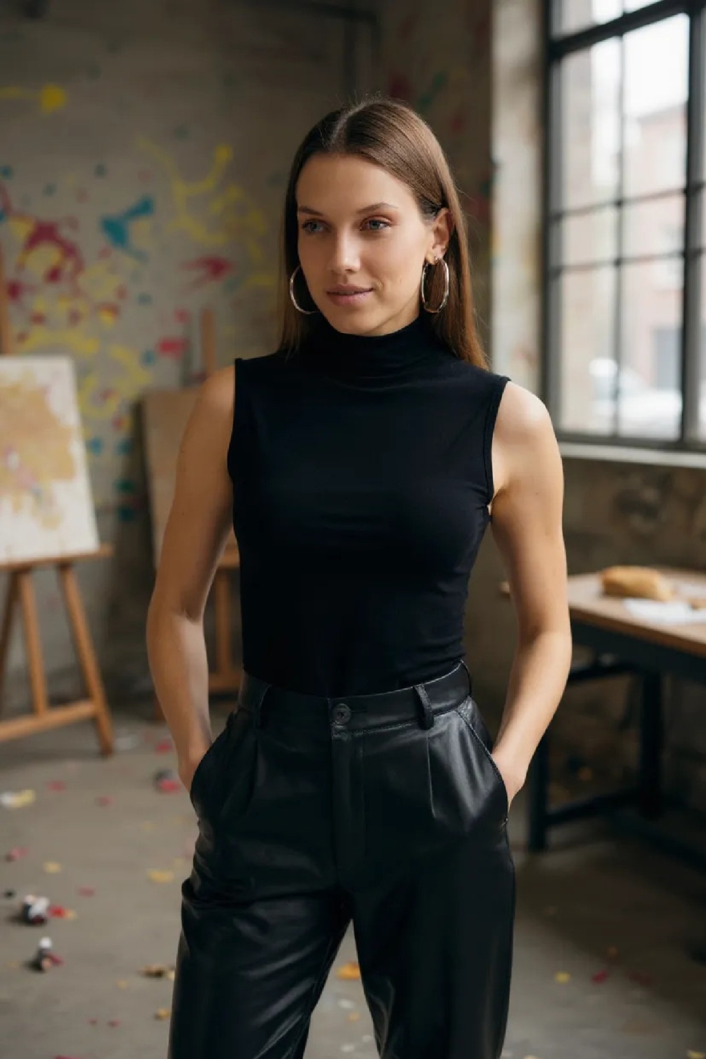 Kadın Siyah Kolsuz Balıkçı Yaka Basic Bluz