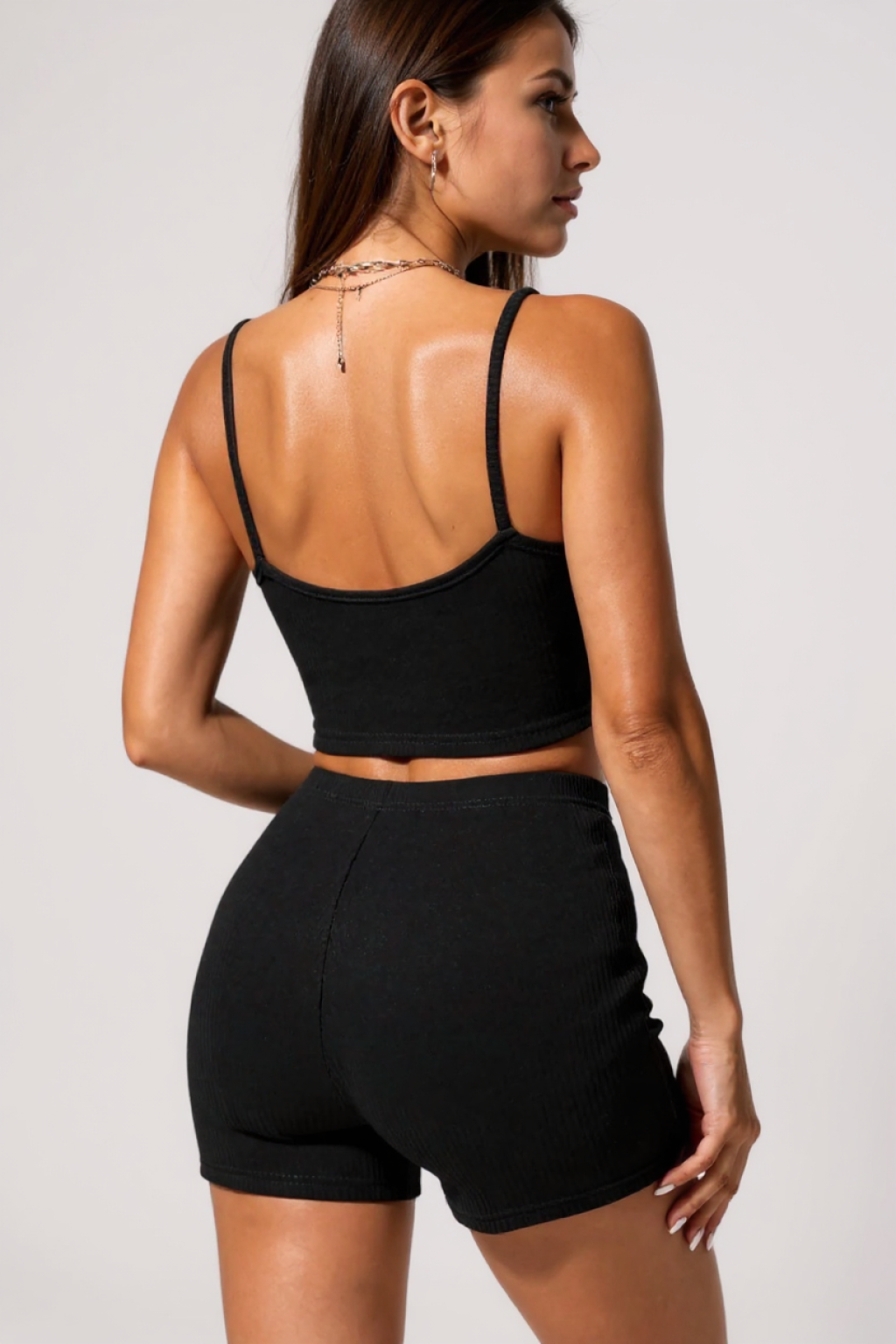 Kadın Siyah Askılı Crop Top ve Şortlu Gecelik Takım