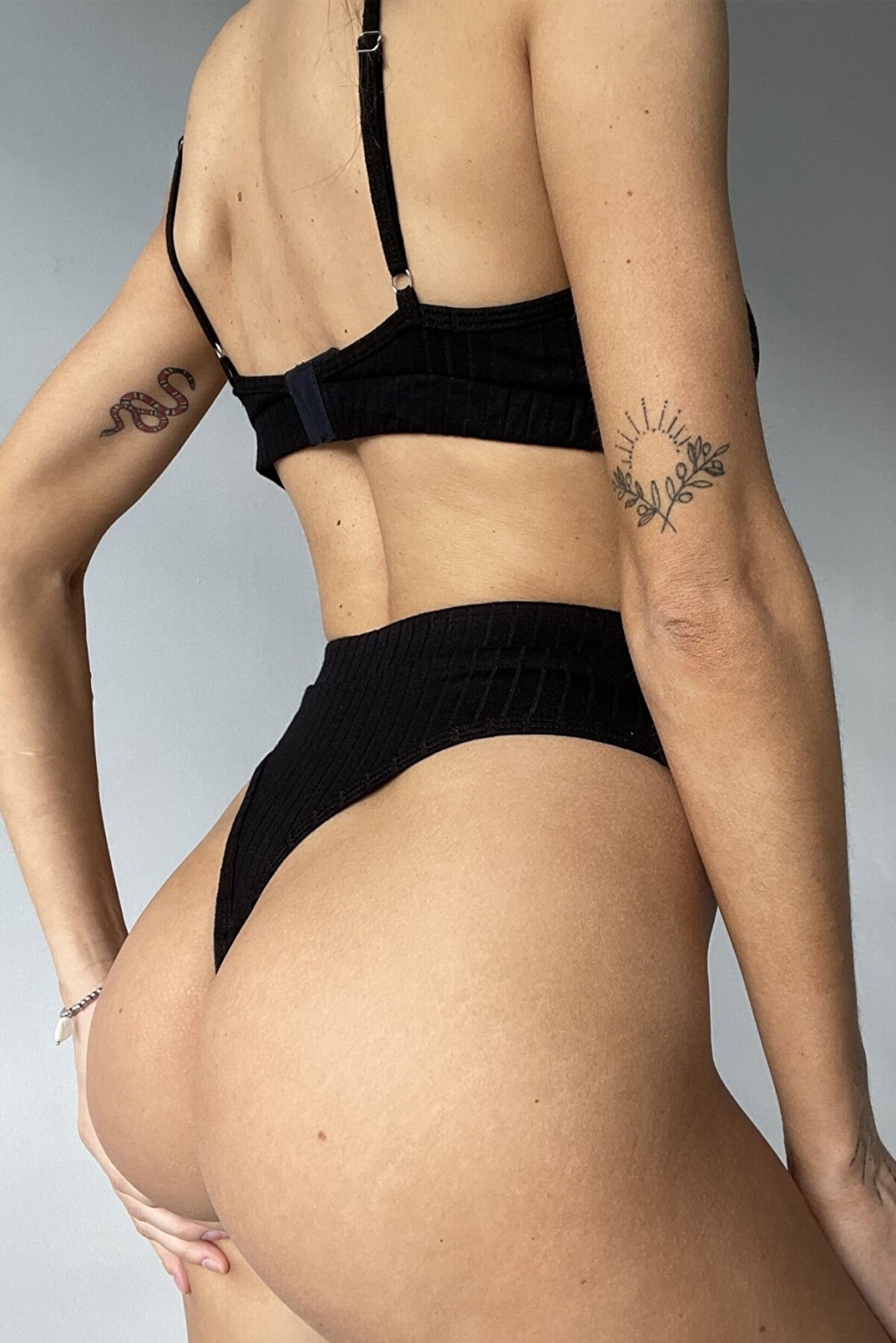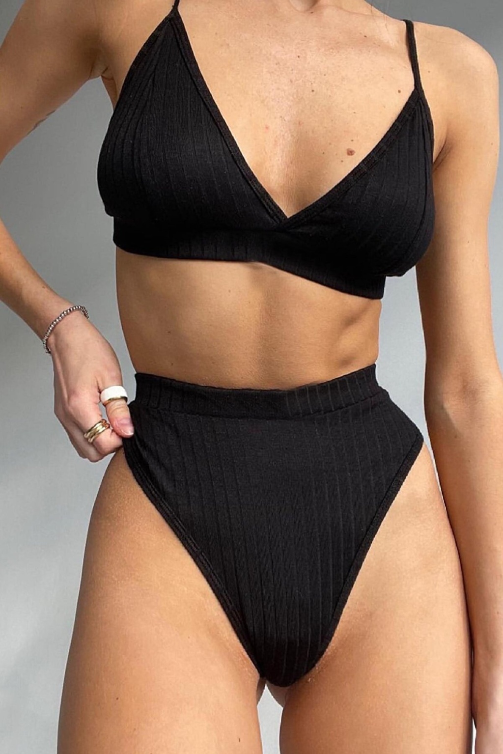 Kadın Siyah Yüksek Bel Dolgusuz Slip Takım – Modern, Konforlu ve Günlük Kombinlere Uygun