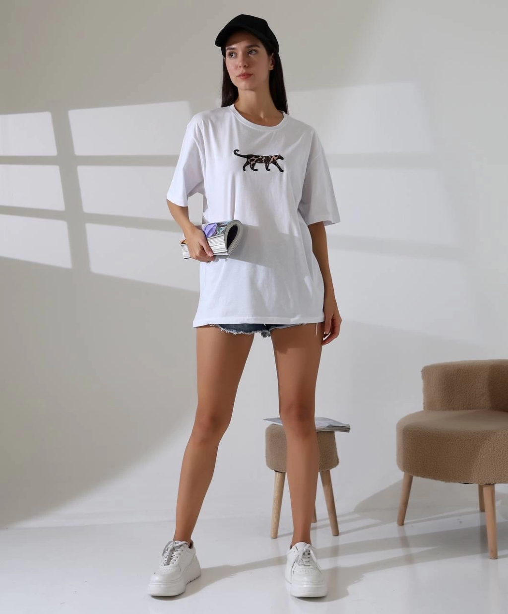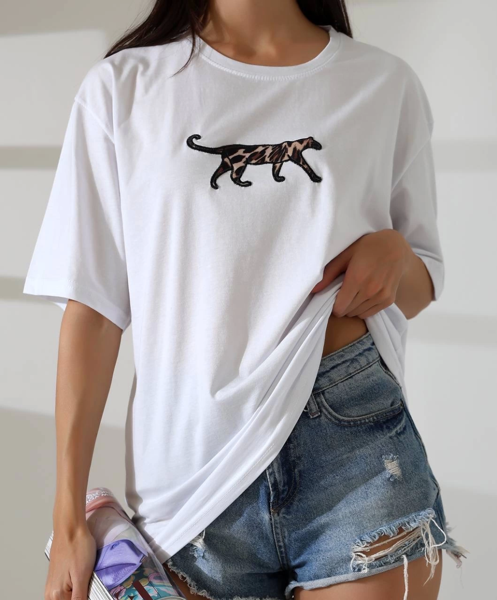 Kaplan nakış işlemeli Oversize tişört