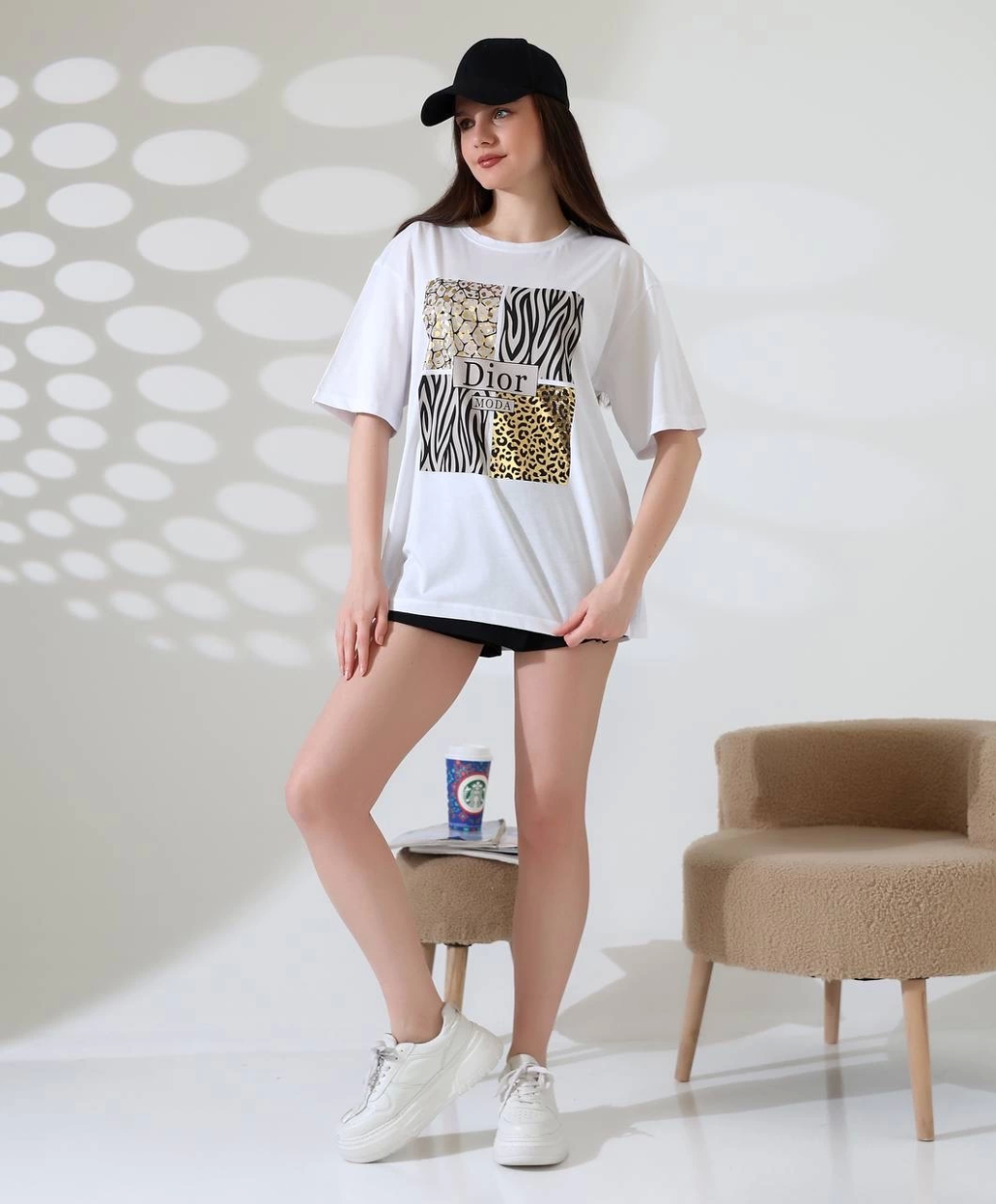 Karma desenli oversize tişört