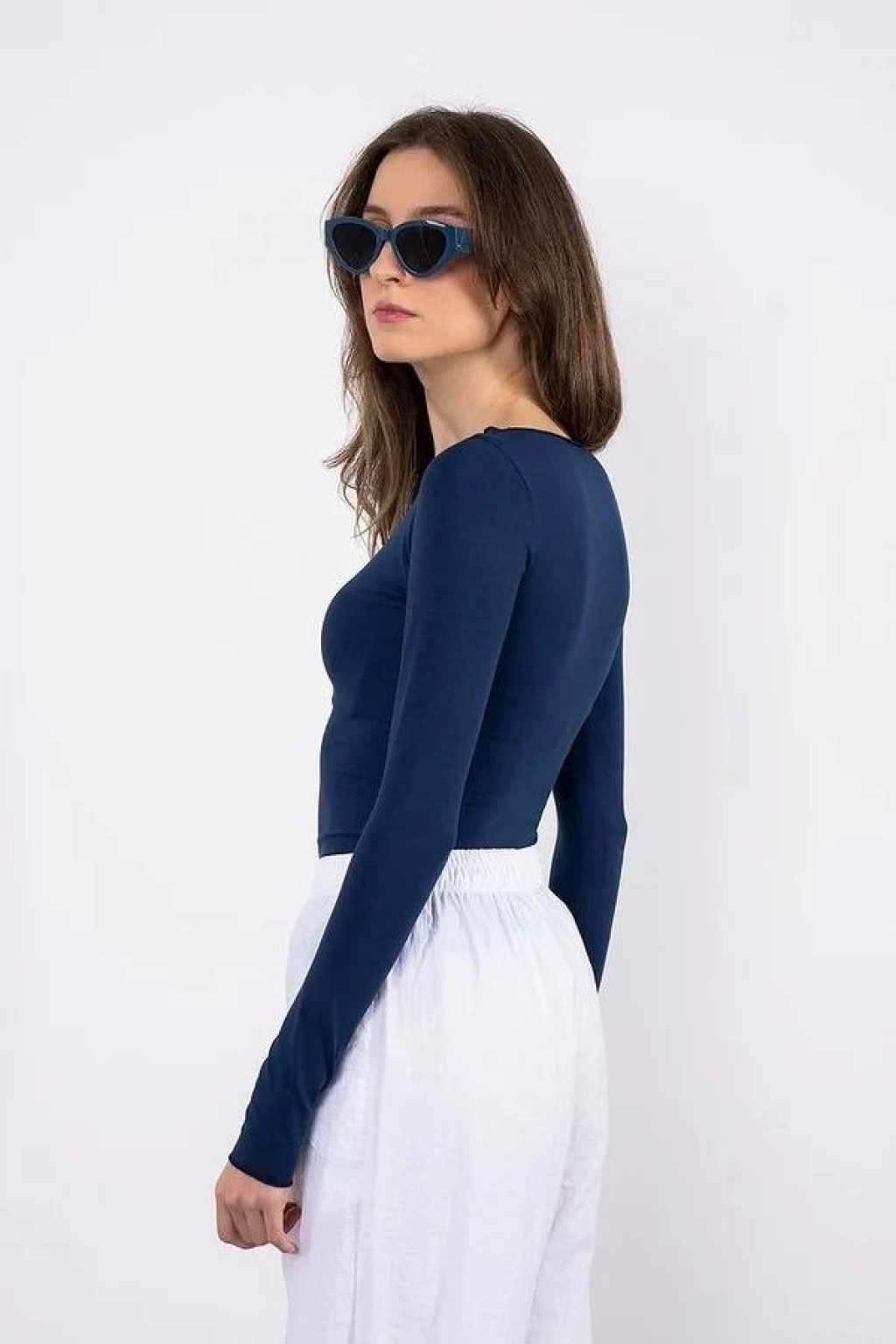Asimetrik yaka bluz lacivert pt