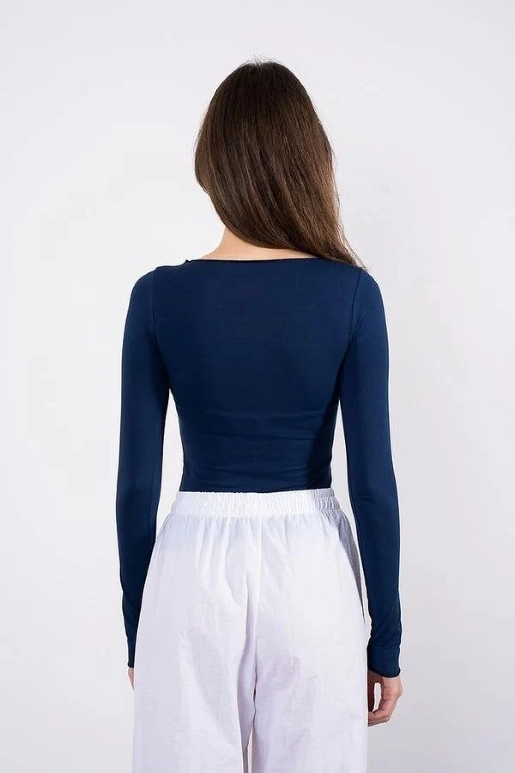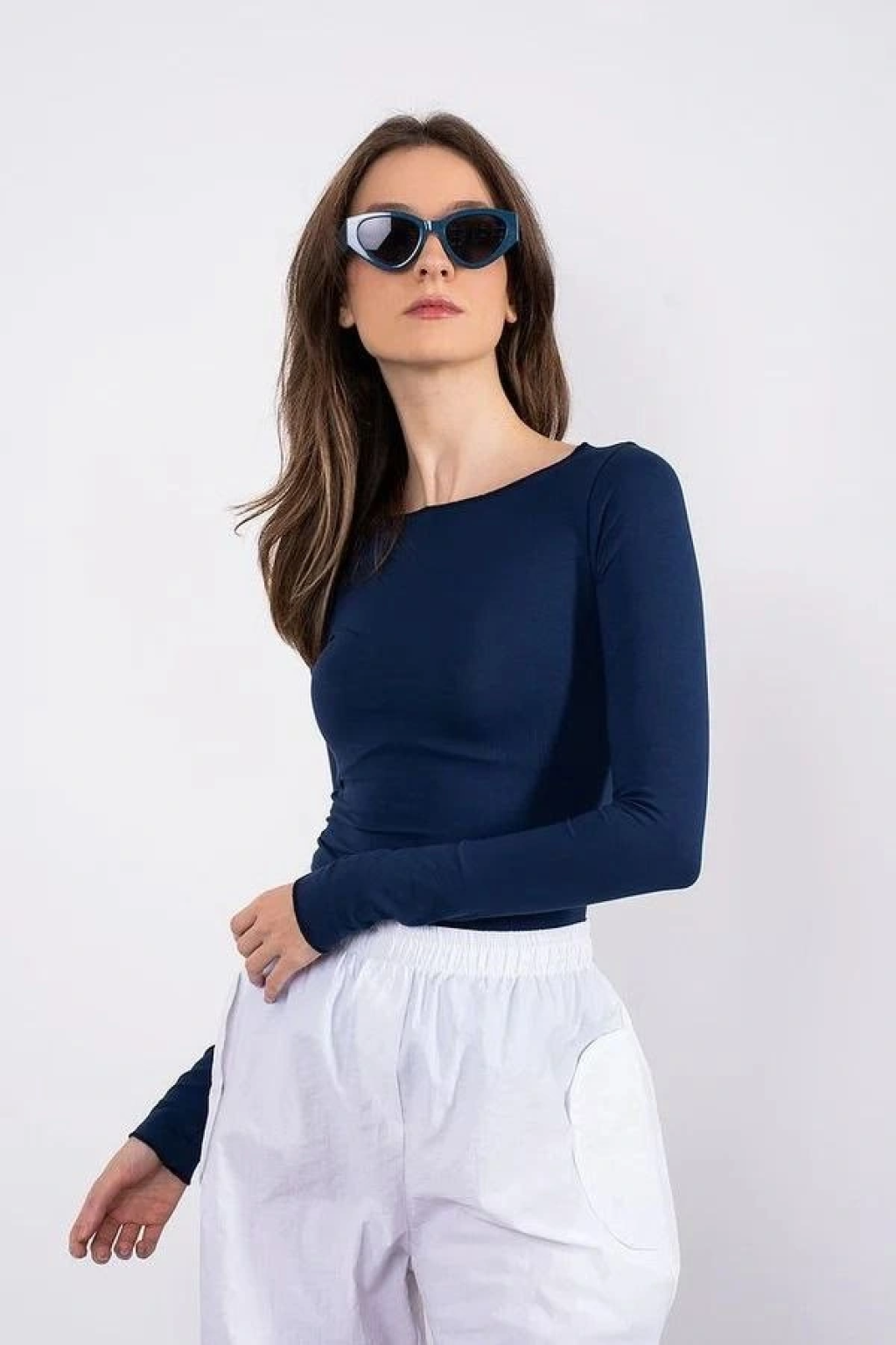 Kayık yaka uzun kollu bluz lacivert pt