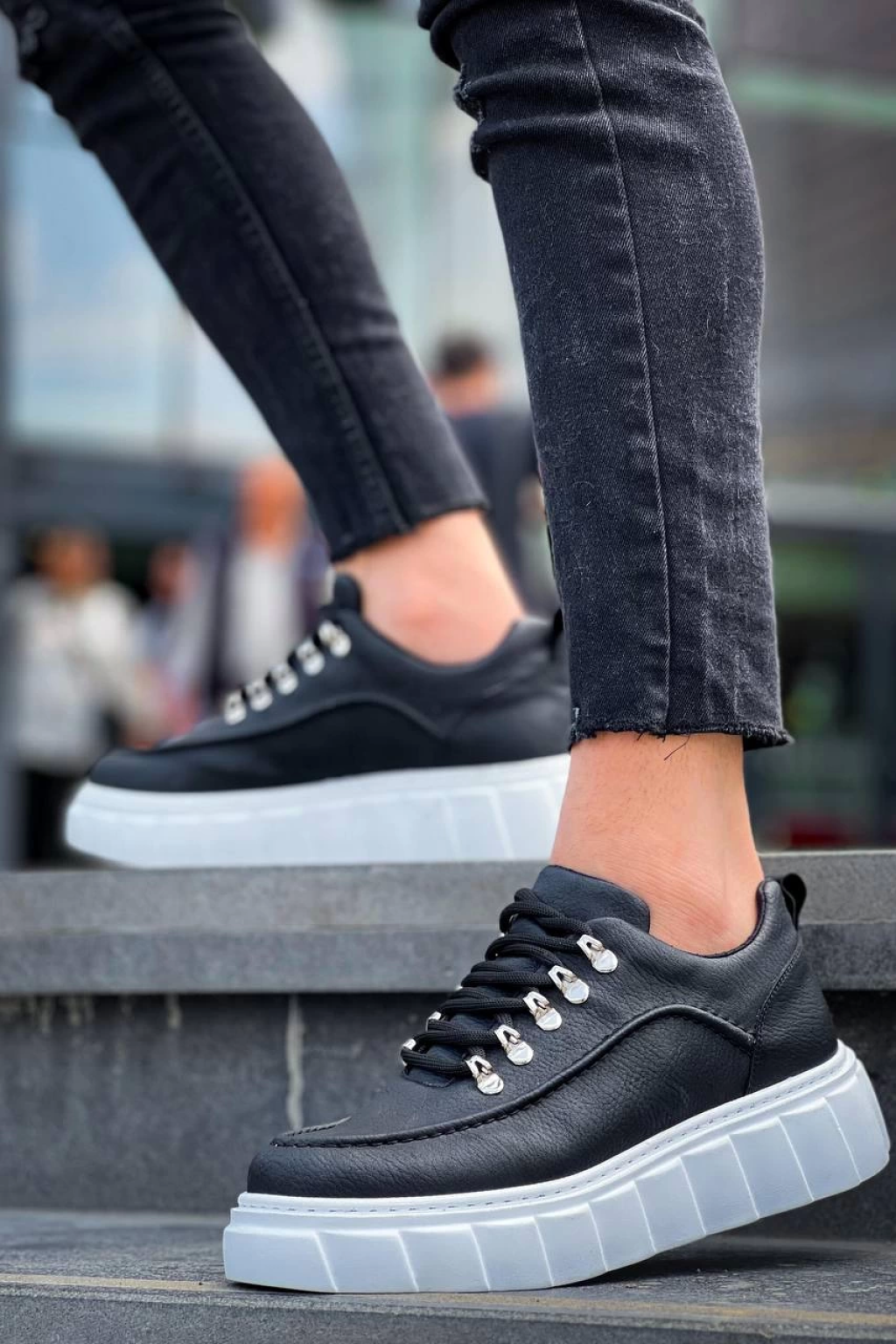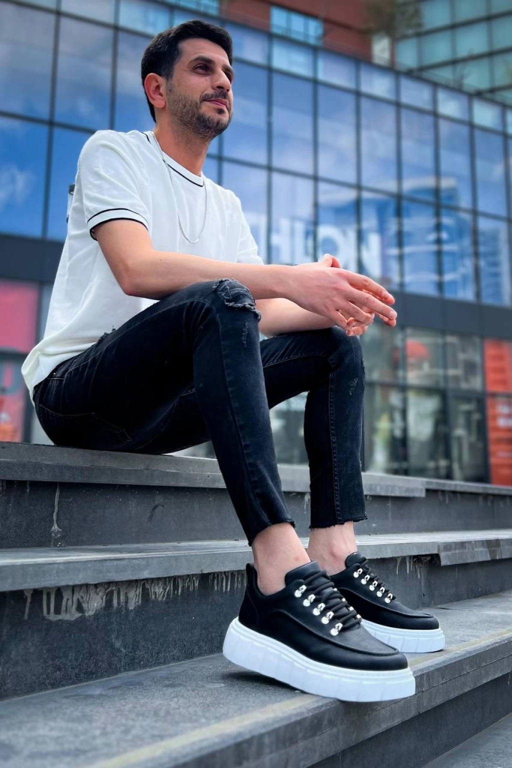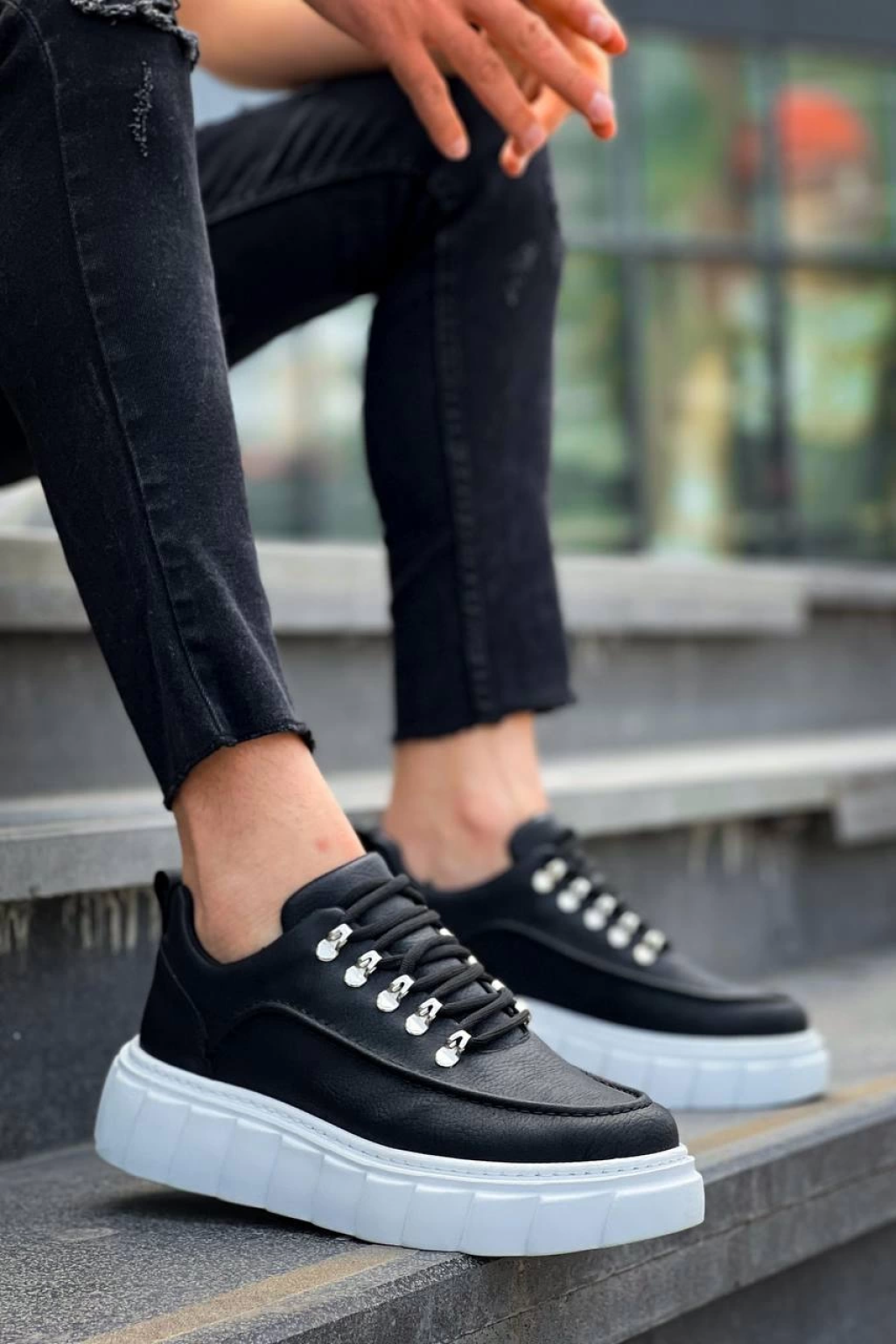 KB-X155 Kuback Siyah Cilt Detaylı Siyah Yüksek Taban Günlük Spor Ayakkabı