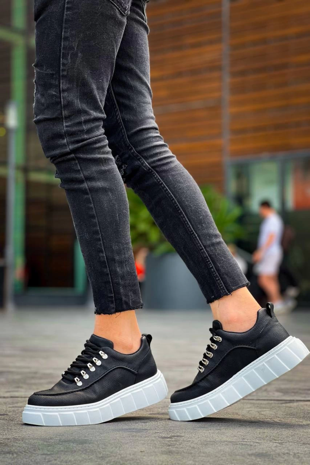 KB-X10 Kuback Siyah Cilt Beyaz Yüksek Taban Günlük Spor Ayakkabı