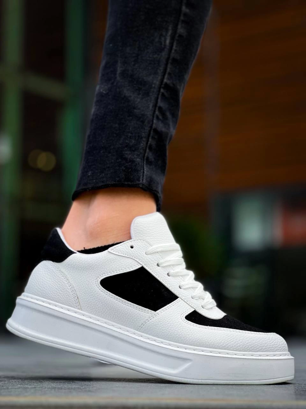 KB-X8 Kuback Beyaz Siyah Cilt Yüksek Taban Günlük Spor Ayakkabı