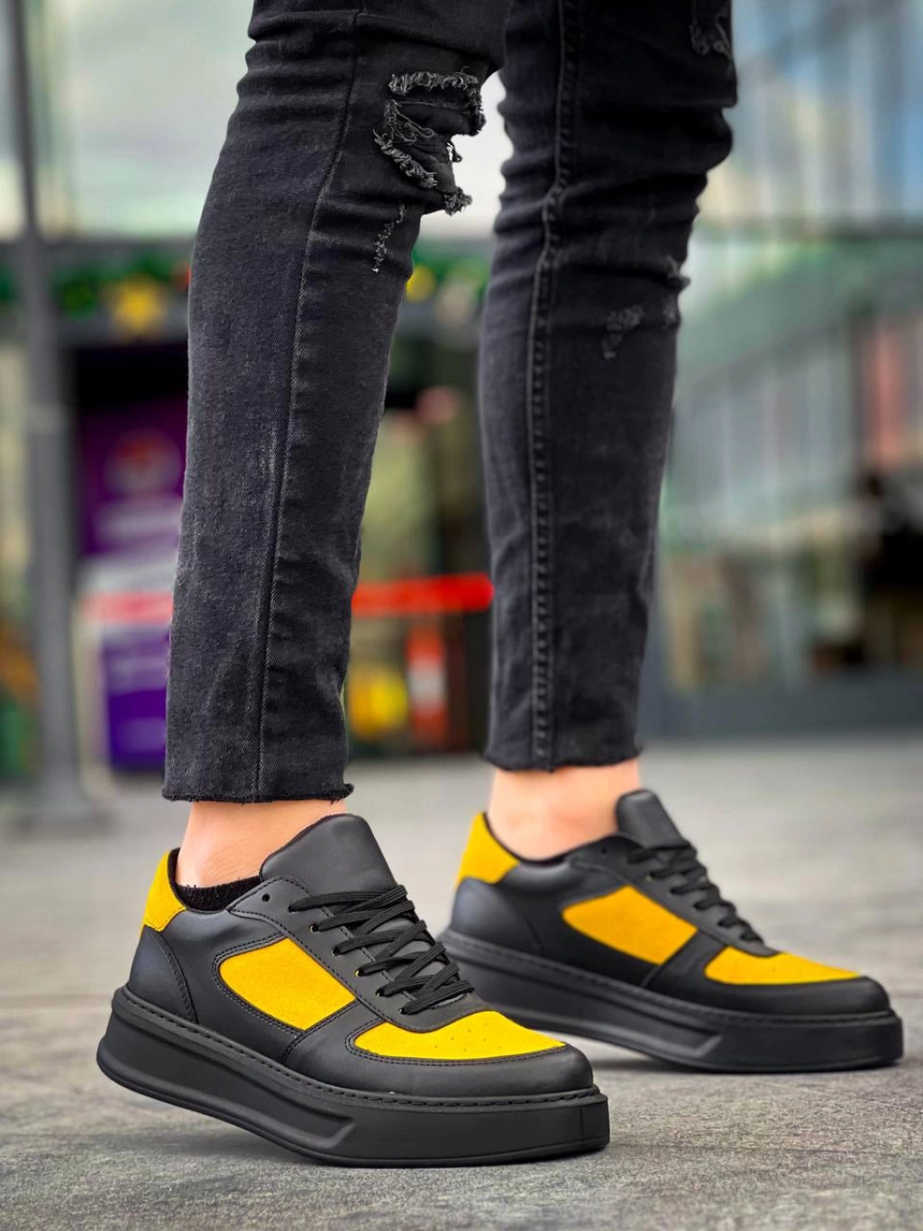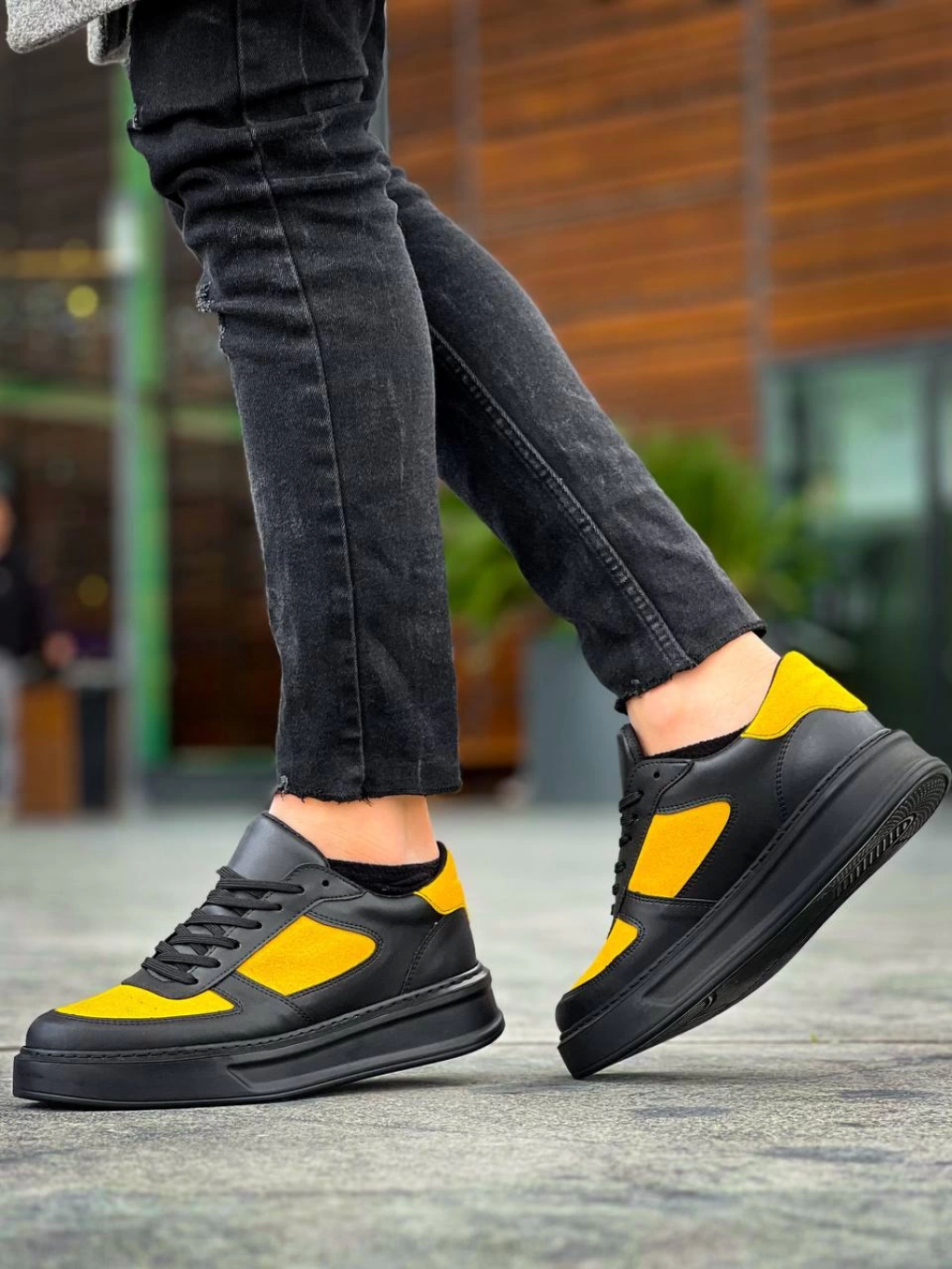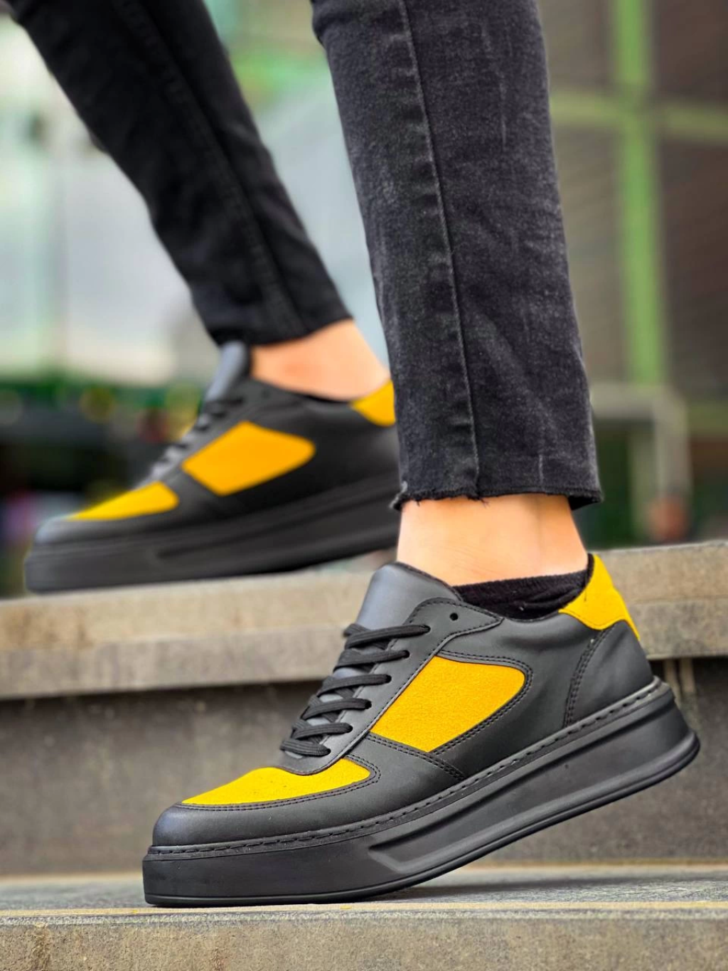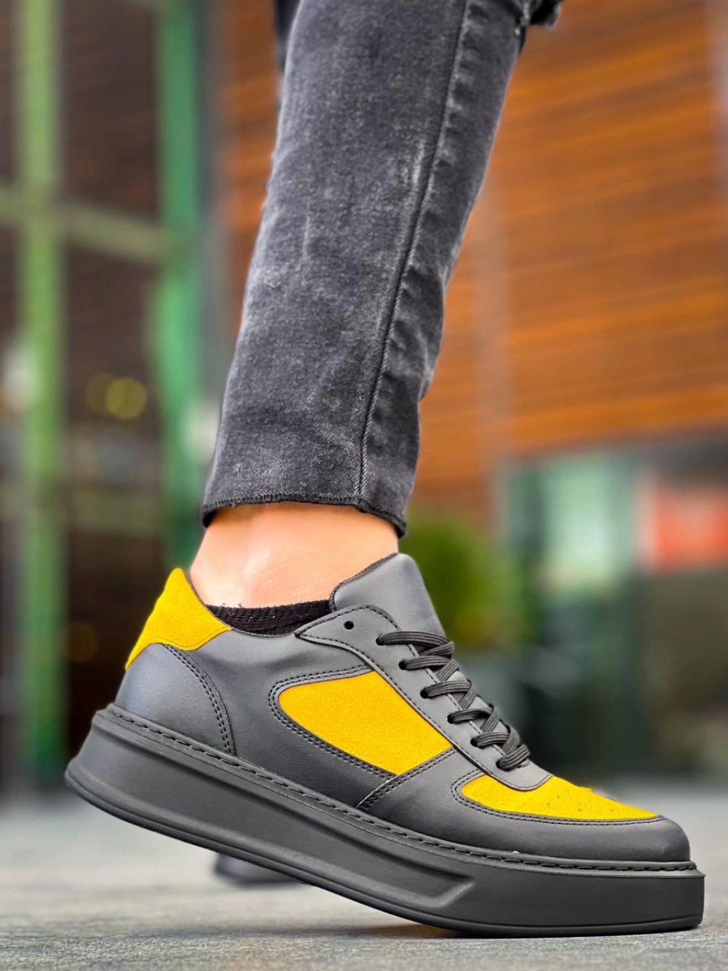 KB-X8 Kuback Siyah Sarı Cilt Yüksek Taban Günlük Spor Ayakkabı
