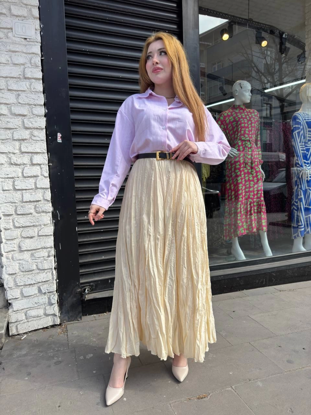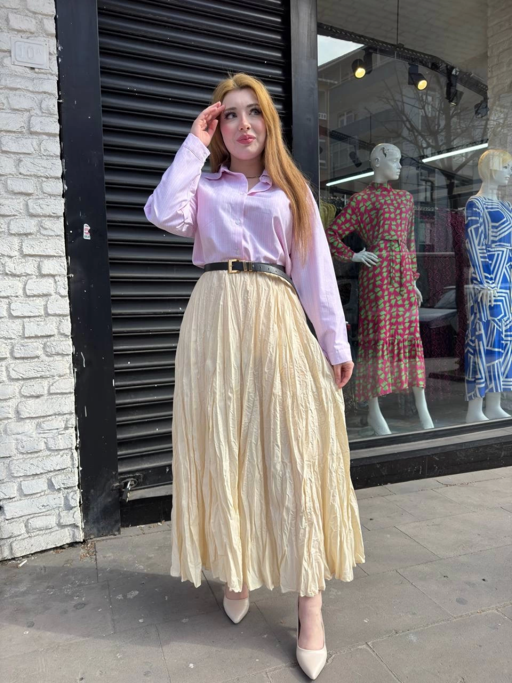 Atlas belden Pileli etek s24930