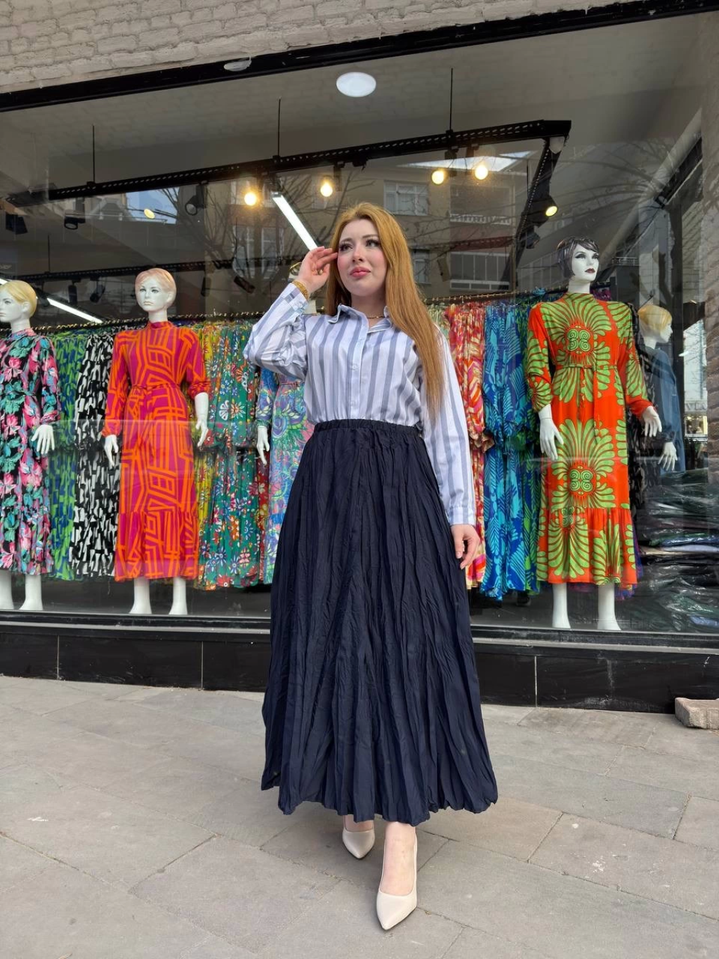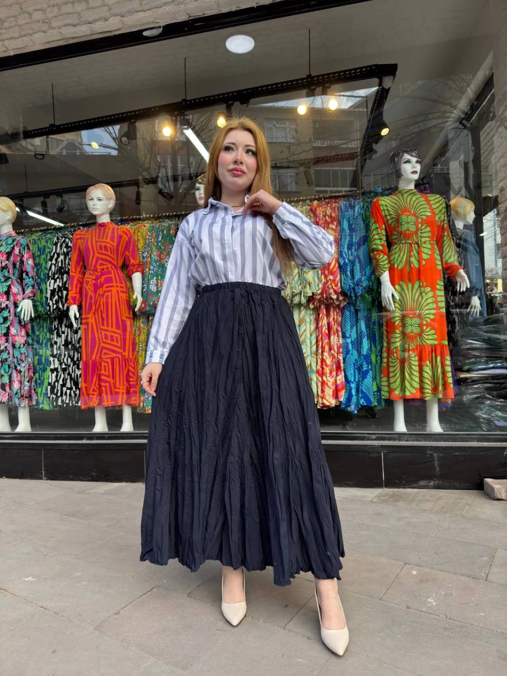 Fırfırlı brodeli astarlı uzun etek siyah s255047