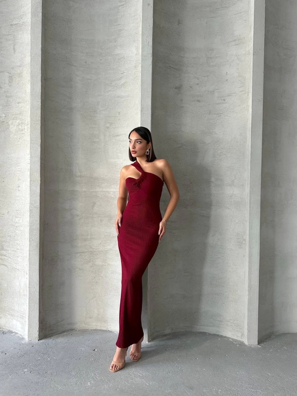 Kadın tül detaylı midi boy yırtmaçlı elbise