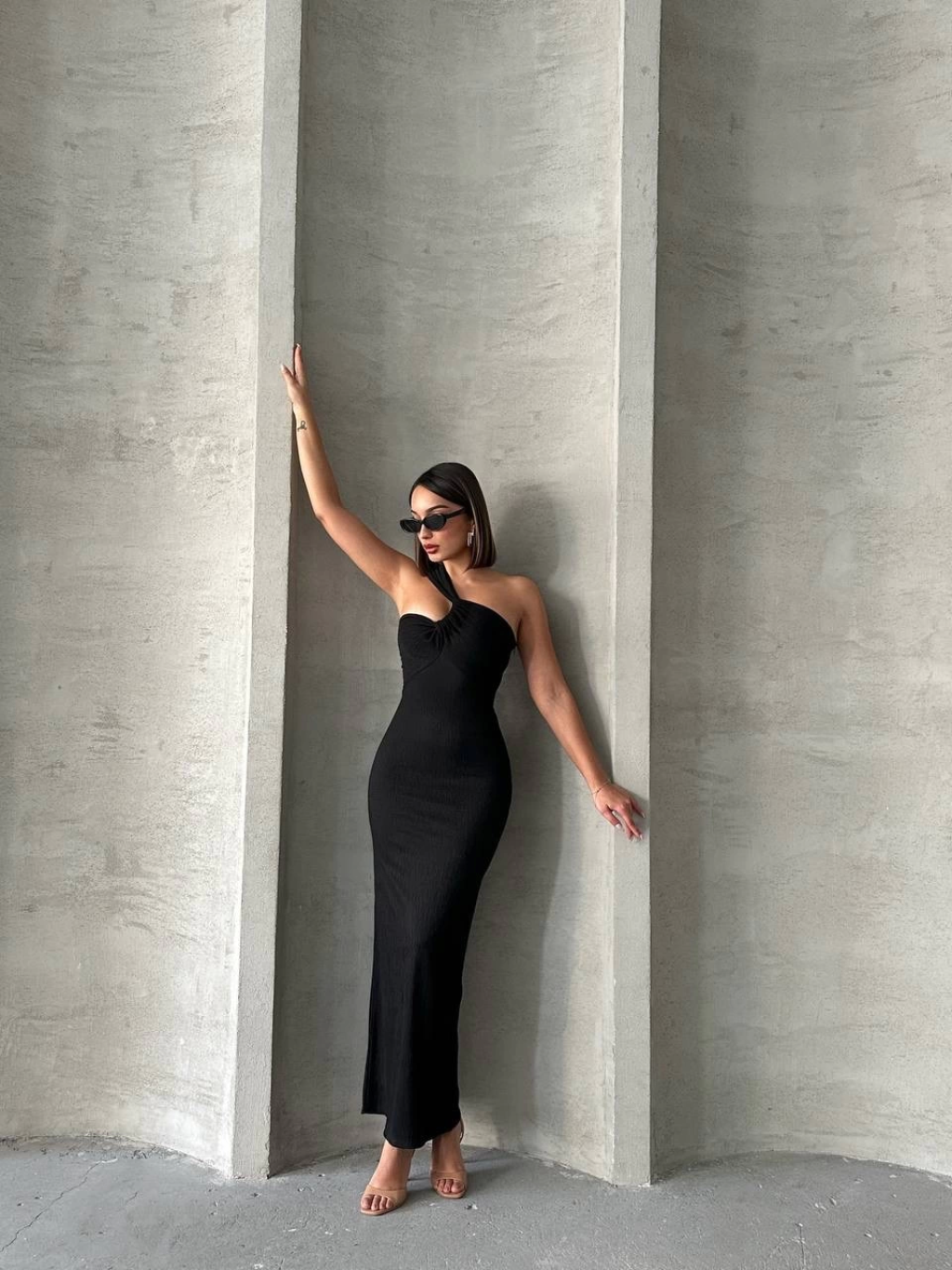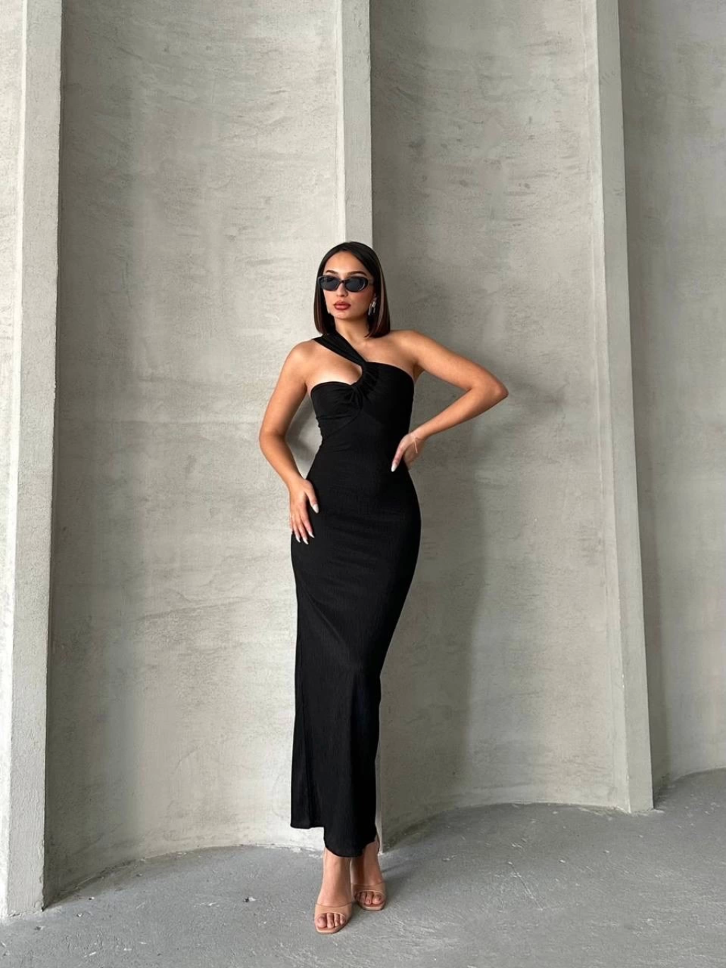 Kadın tül detaylı midi boy yırtmaçlı elbise
