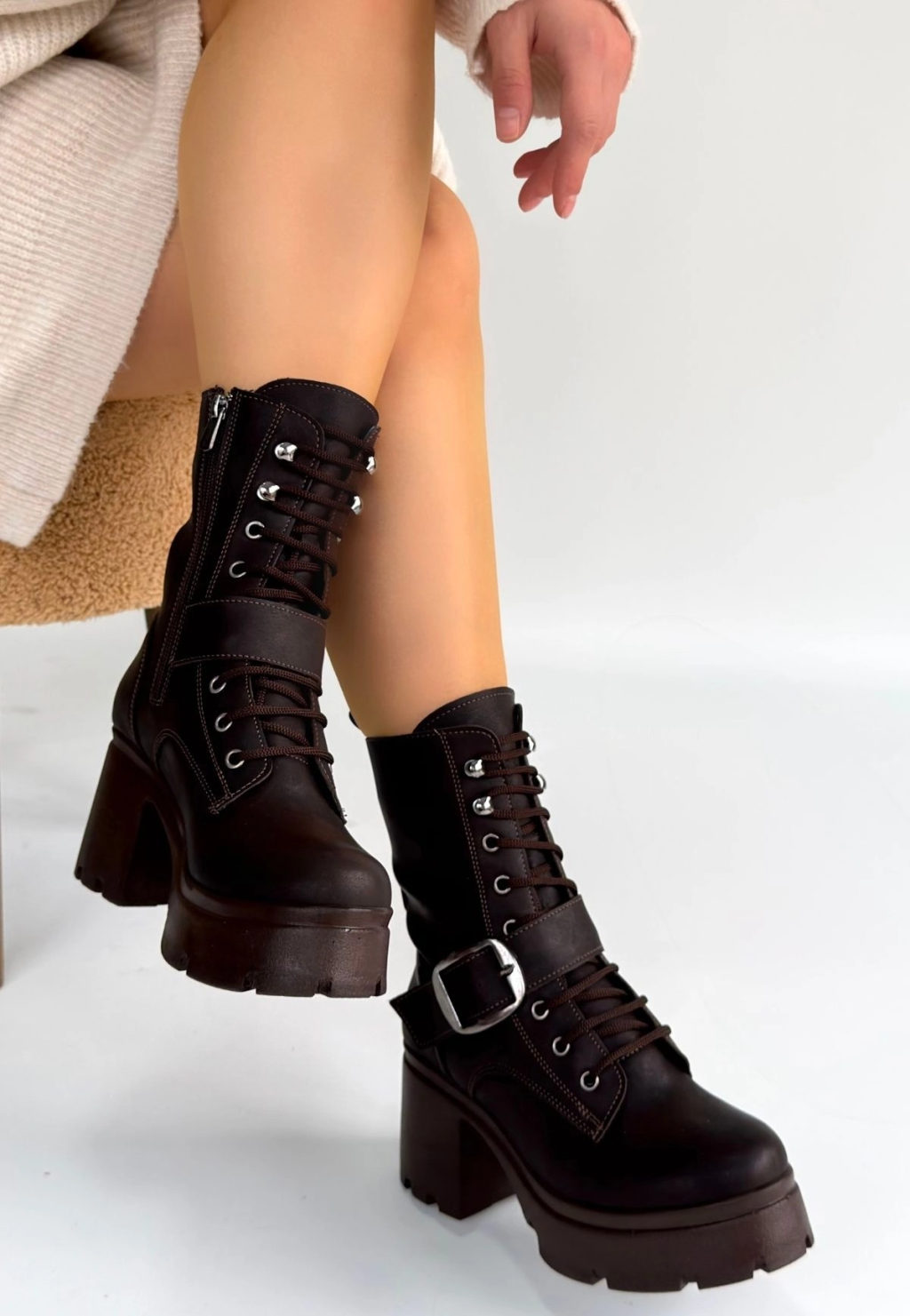 Yior Kahverengi Cilt Topuklu Bot