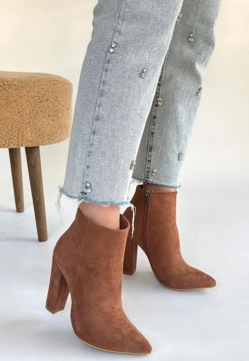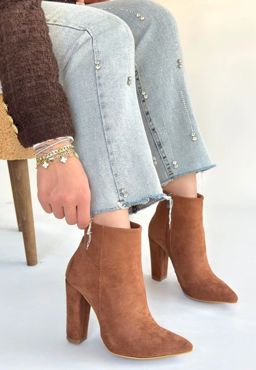Linma Bej Nubuk Bağcıklı Topuklu Bot