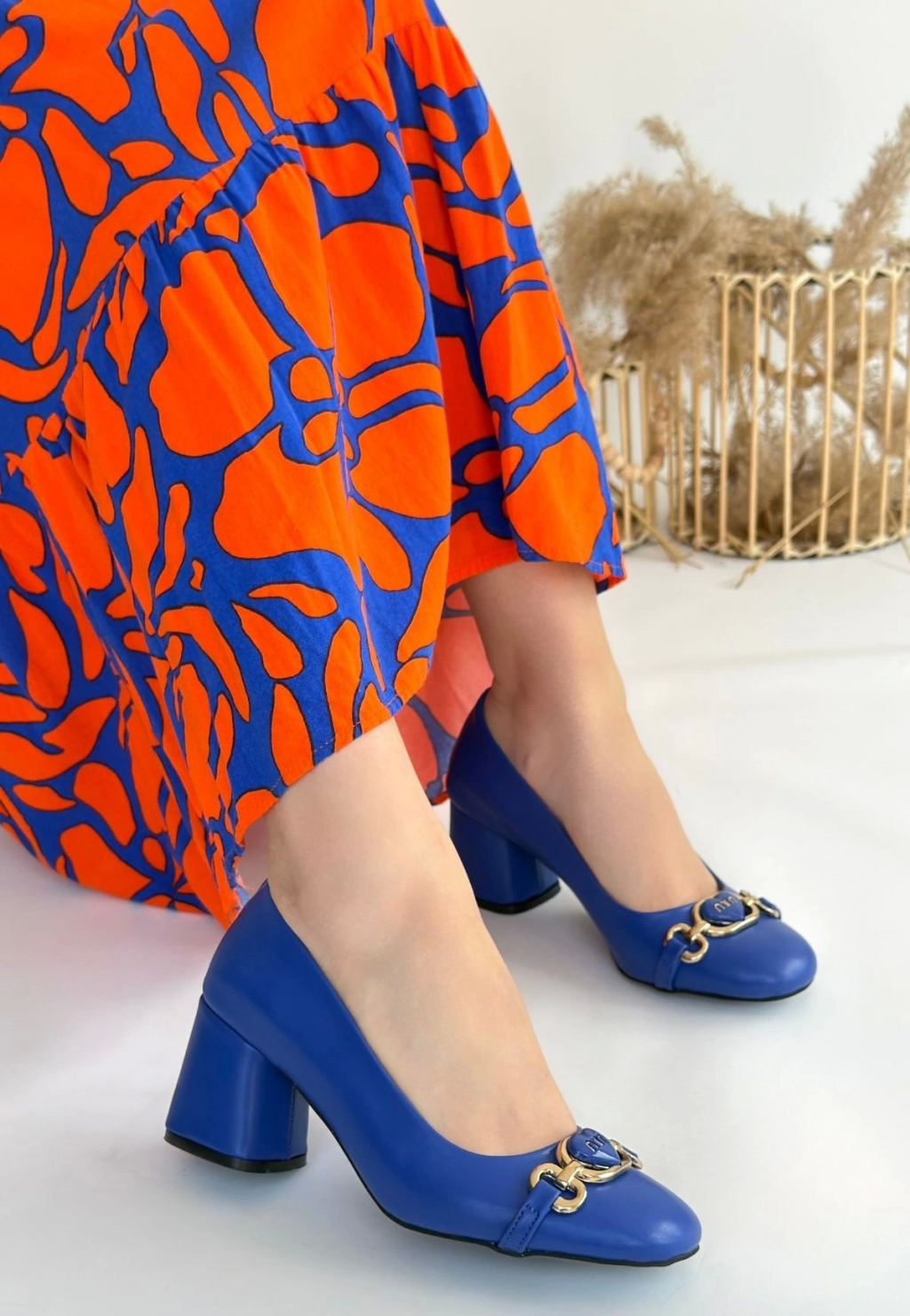 Kier Mavi Cilt Topuklu Ayakkabı