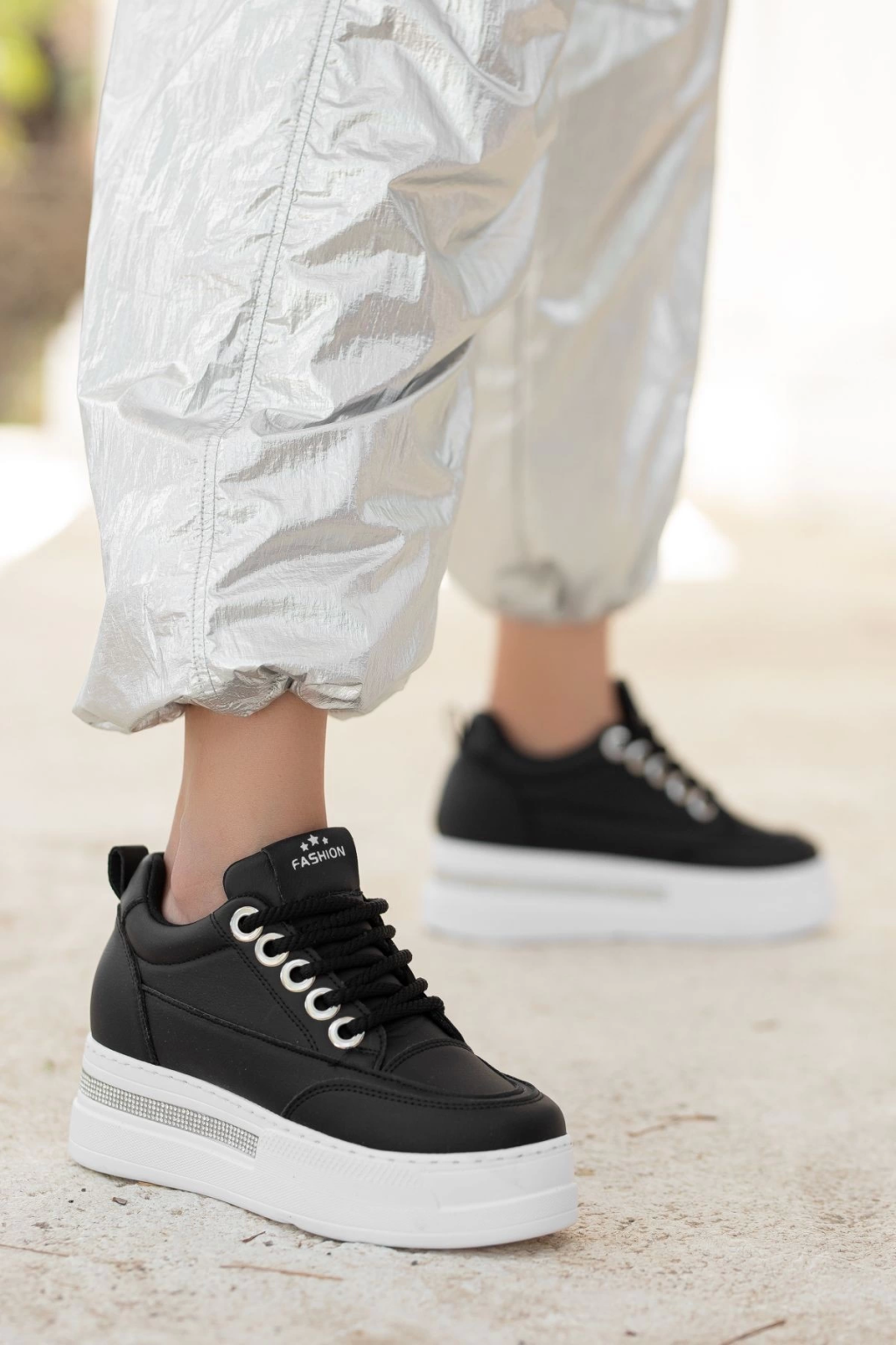 Lulu Siyah Cilt Beyaz Tabanlı Bağcıklı Spor Ayakkabı