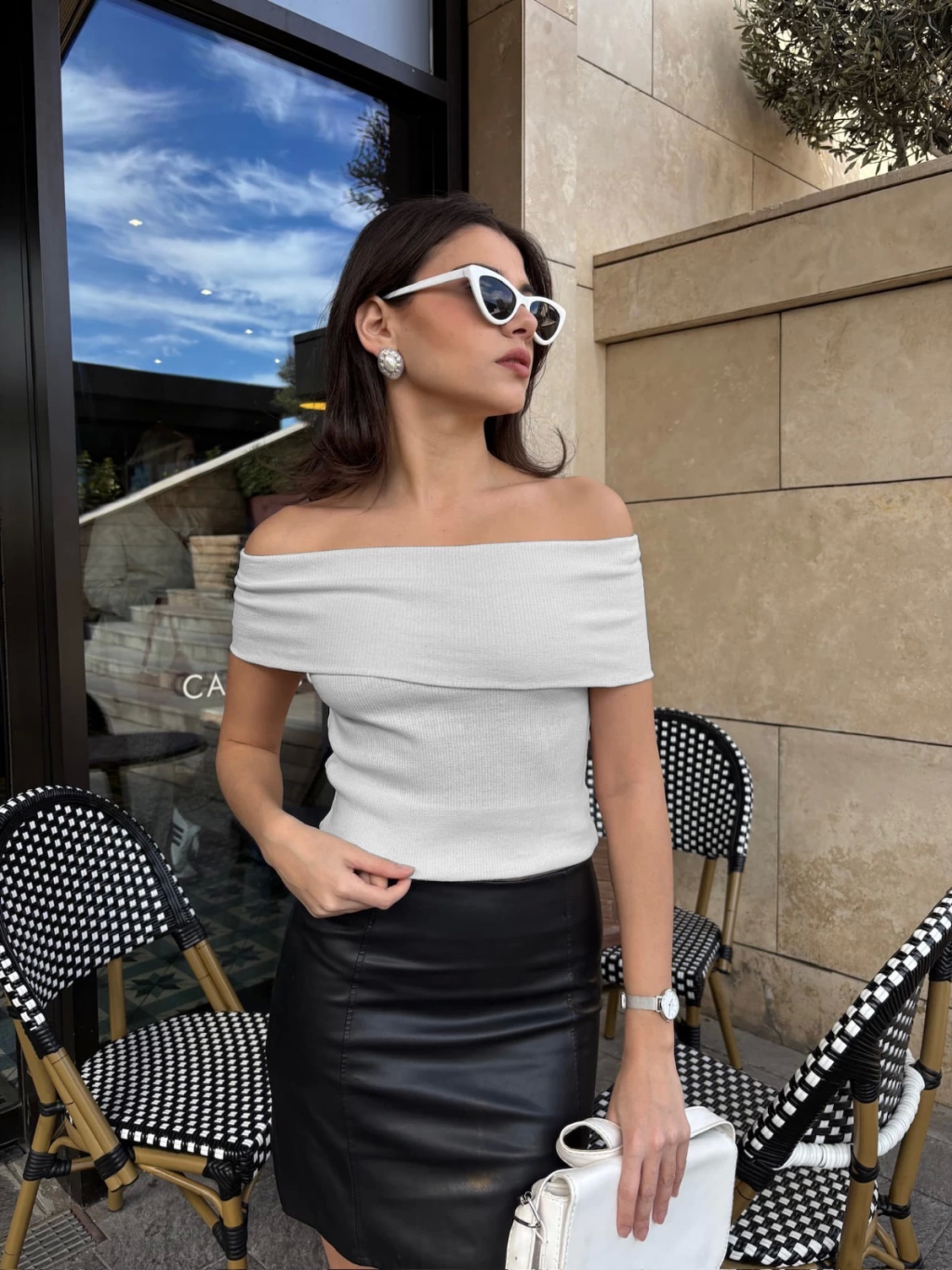 Tek omuzlu Otoman kumaş gold metal detaylı bluz s2311
