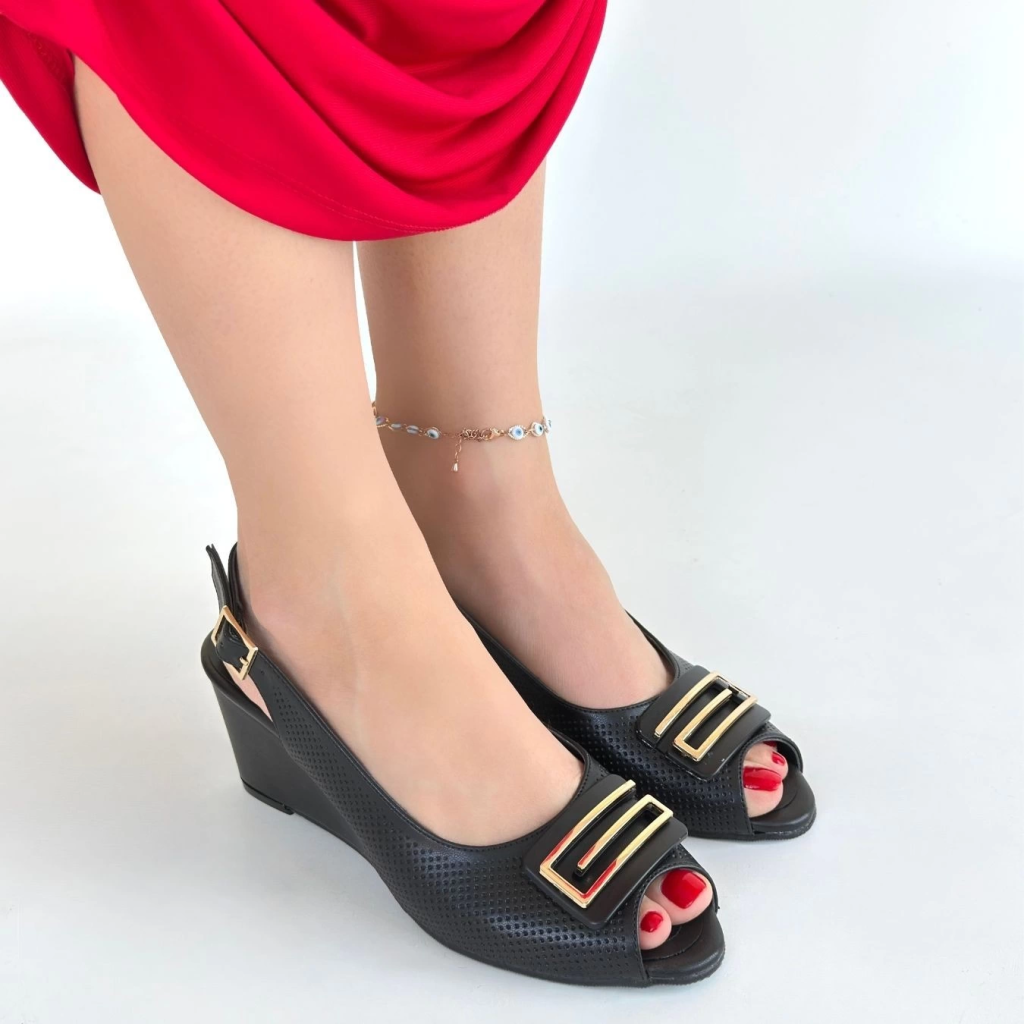 Mamba Siyah Cilt Dolgu Topuk Ayakkabı