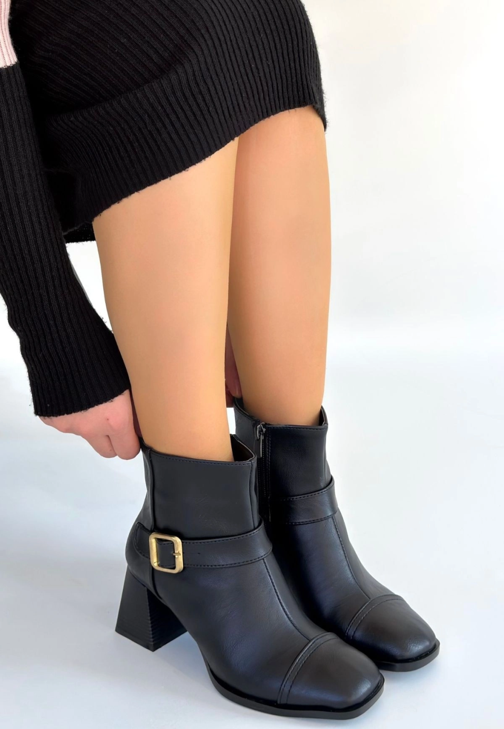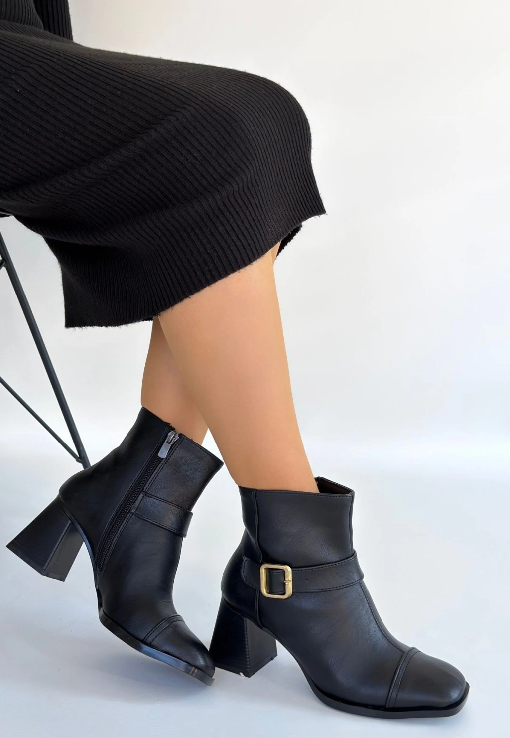 Jones Siyah Cilt Bağcıklı Topuklu Bot