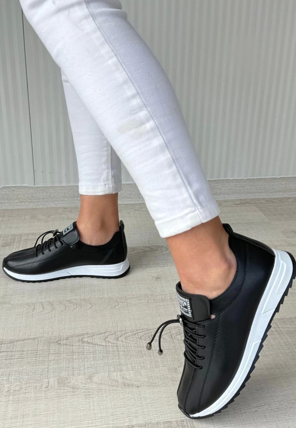 Monya Siyah Cilt Bağcıklı Spor Ayakkabı