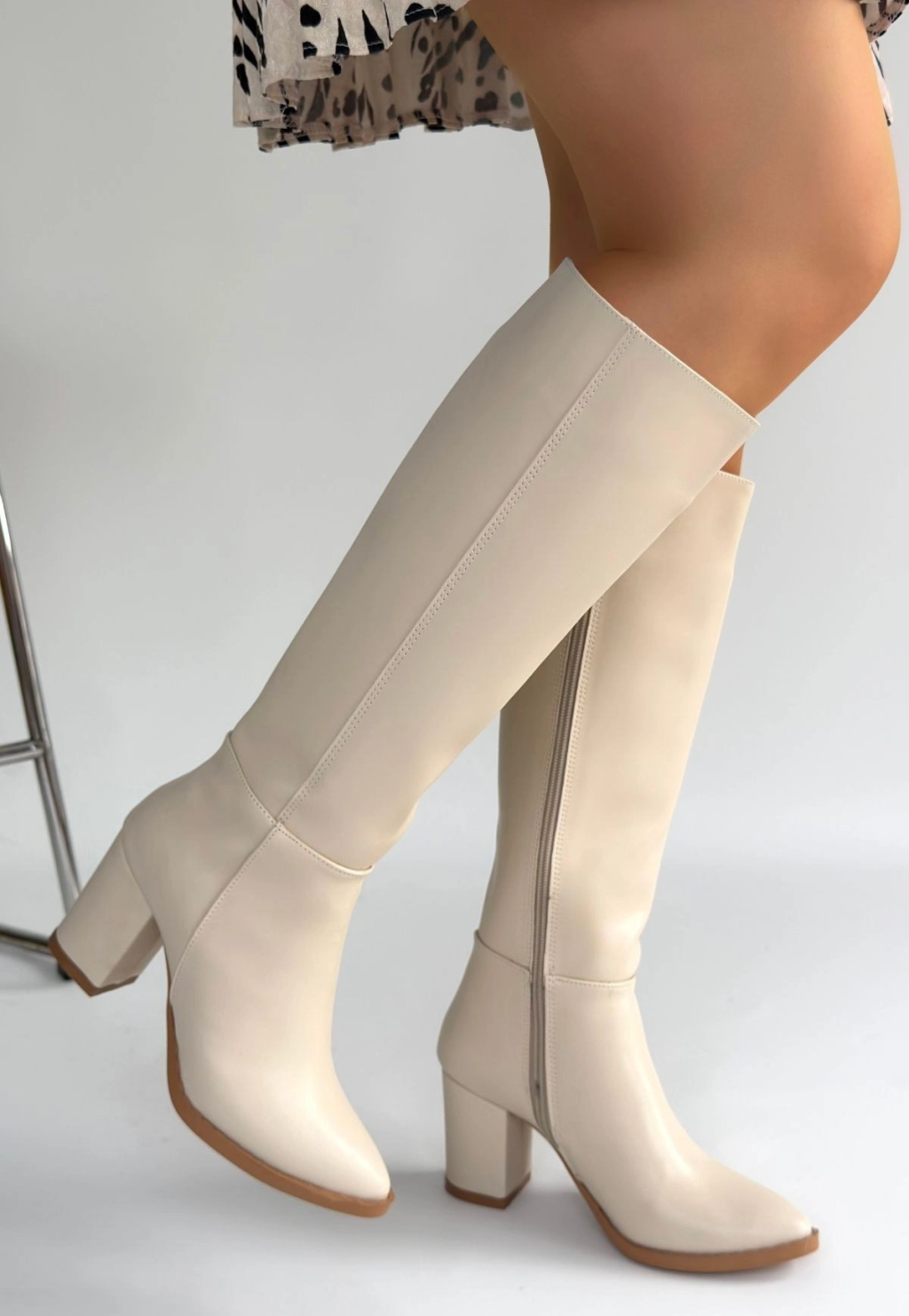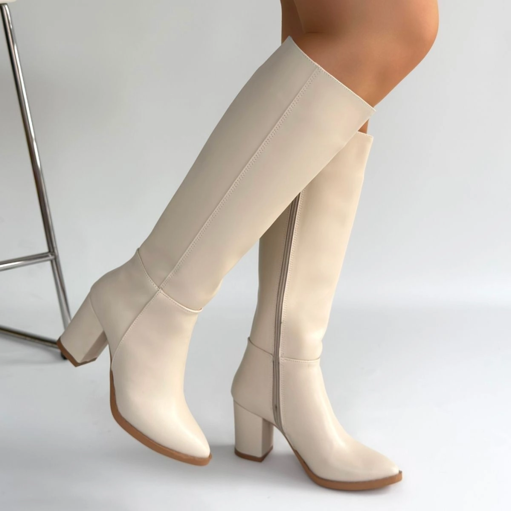 Tiyan Bej Cilt Topuklu Çizme