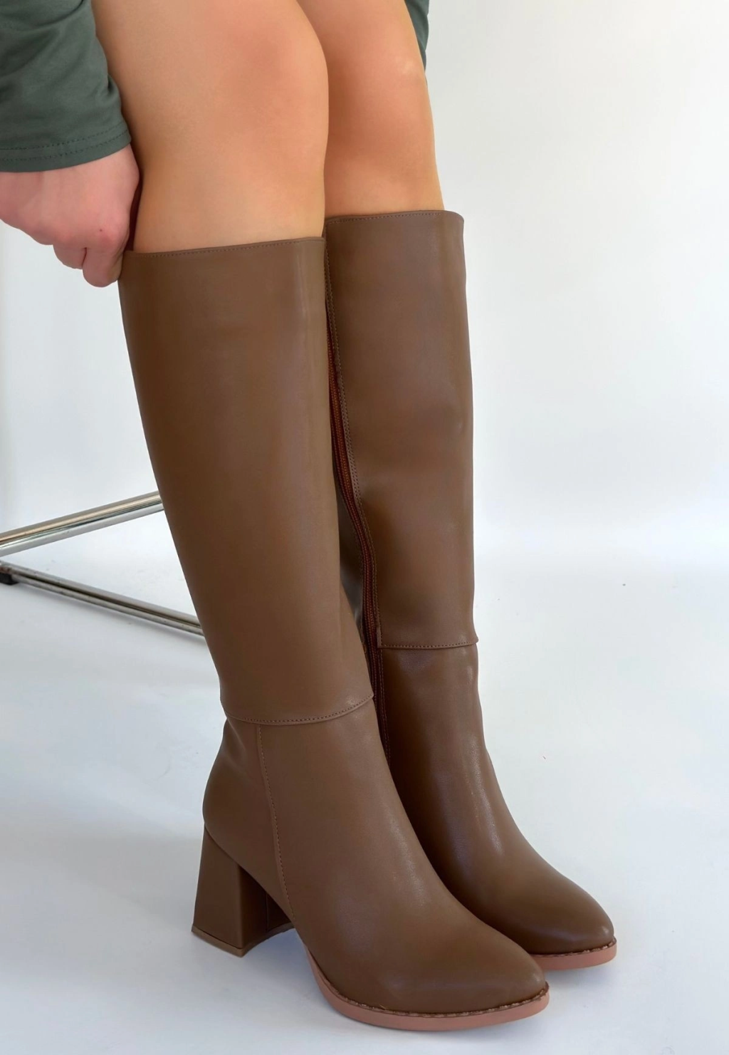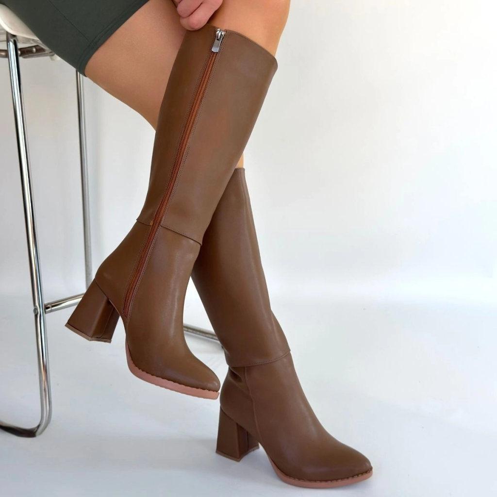 Tiyan Kahverengi Cilt Topuklu Çizme