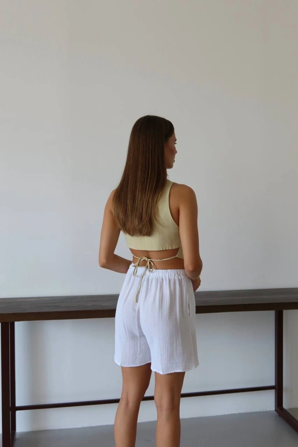 Müslin kumaş şort bağcıklı beyaz pt