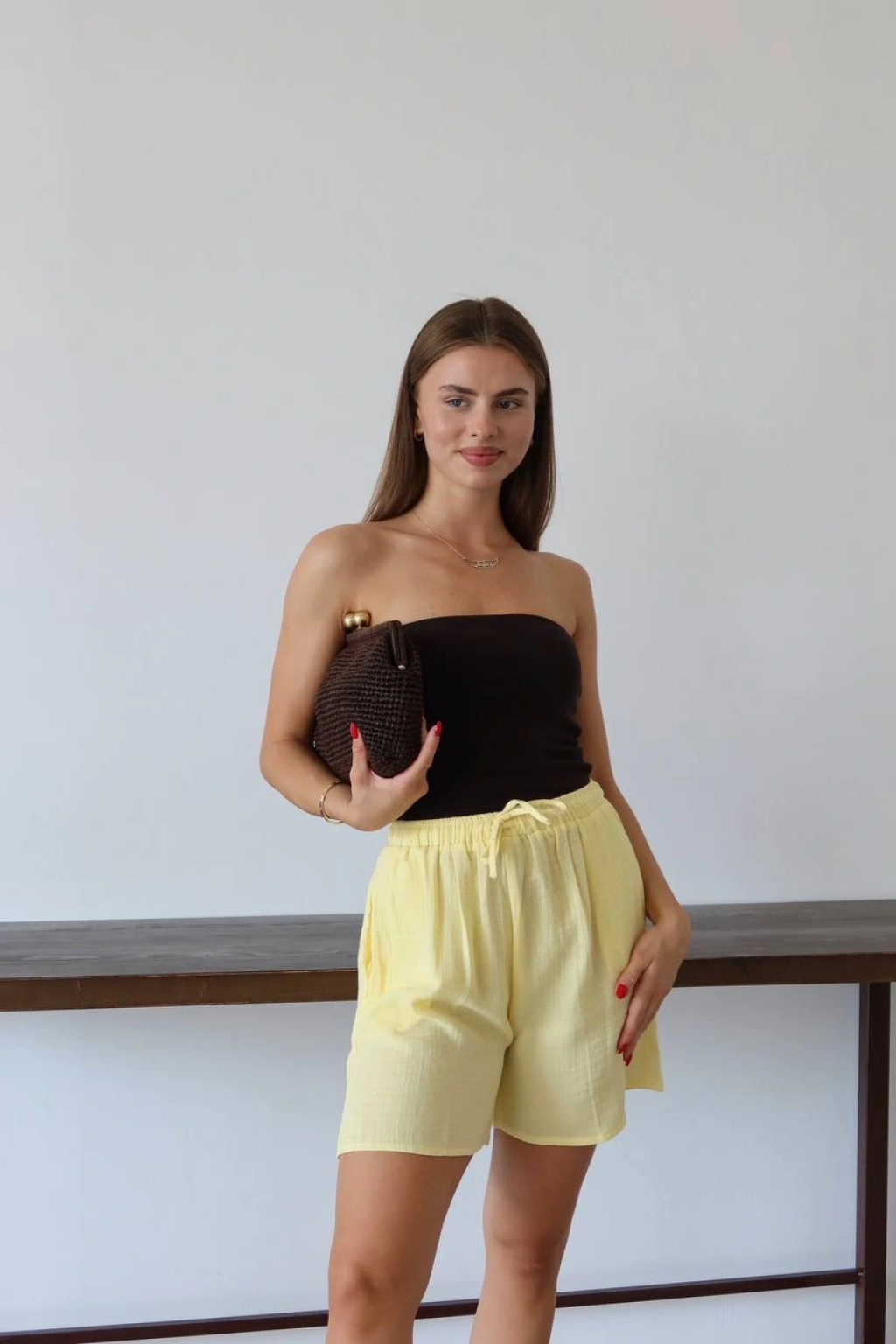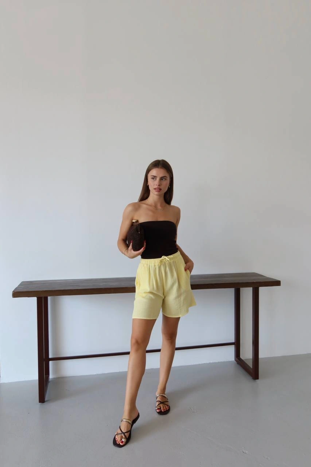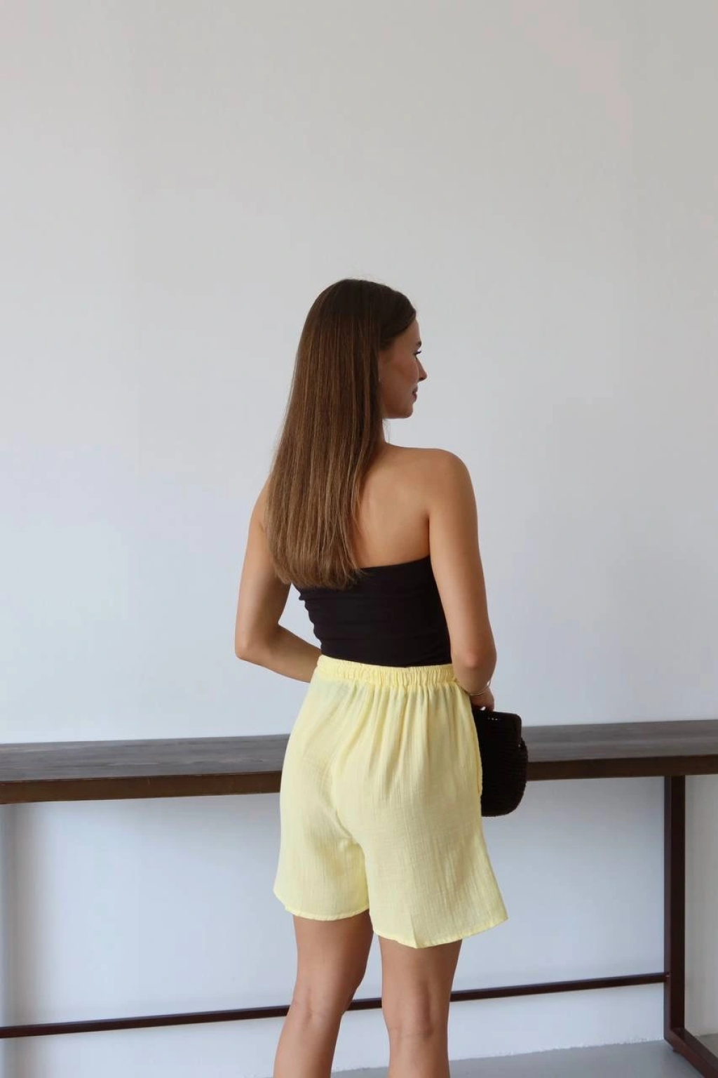 Müslin kumaş şort bağcıklı sarı pt