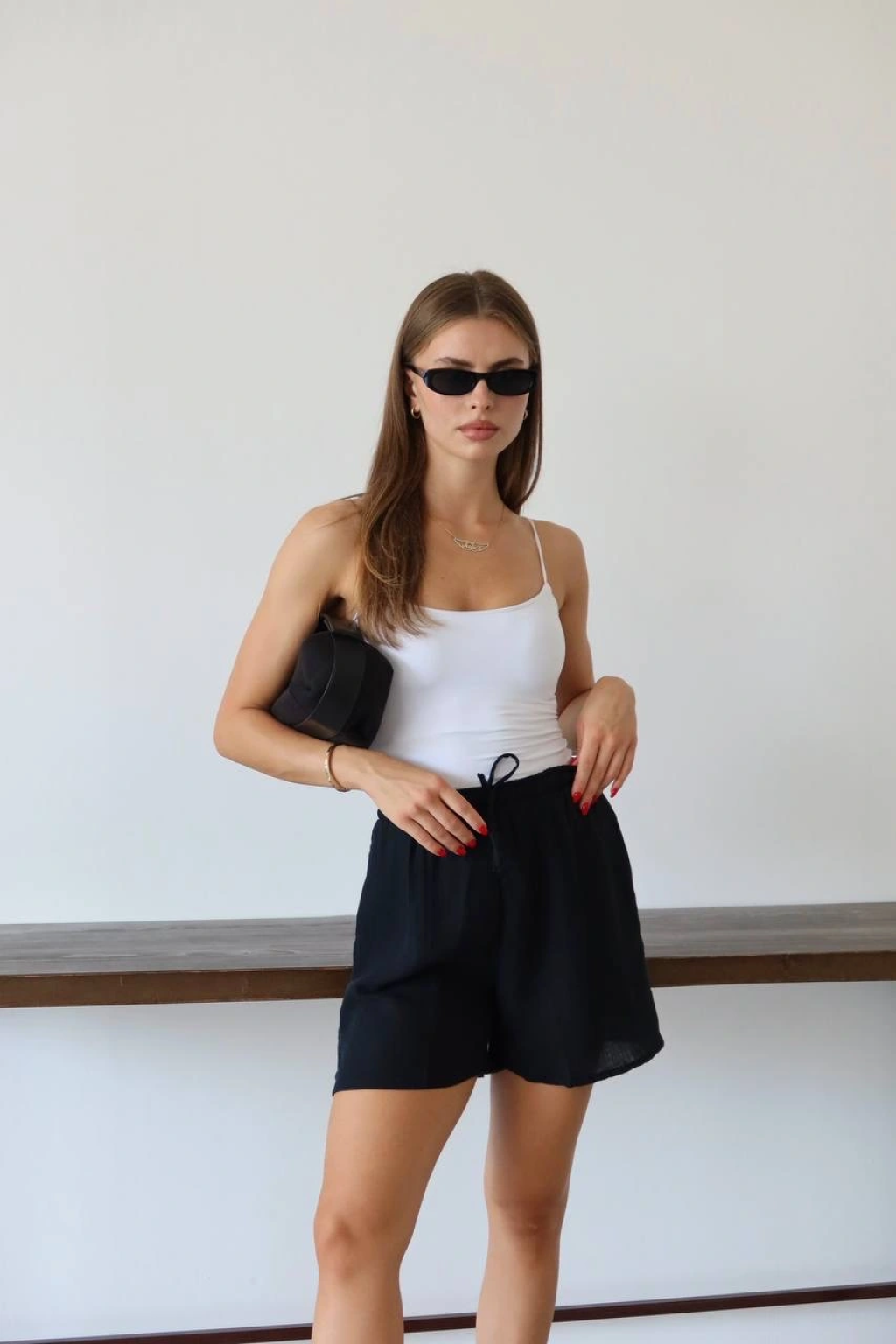 Müslin kumaş şort bağcıklı siyah pt