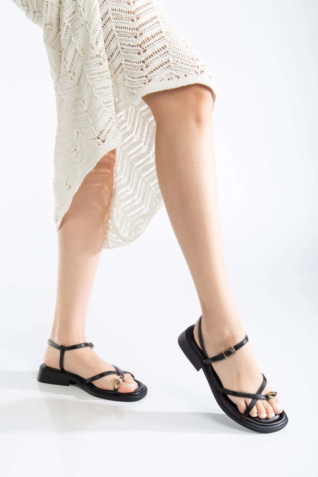 Saide Siyah Cilt Cırt Cırtlı Sandalet