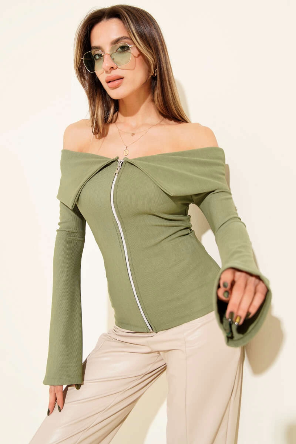 Omzu Açık Fermuarlı Bluz siyah T4330