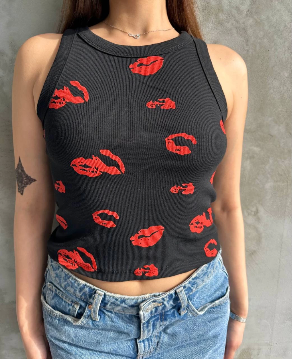 Kadın Siyah Sırtı Çapraz Lastik Detaylı Crop Top Bluz – Şık, Rahat ve Kolay Kombinlenebilir