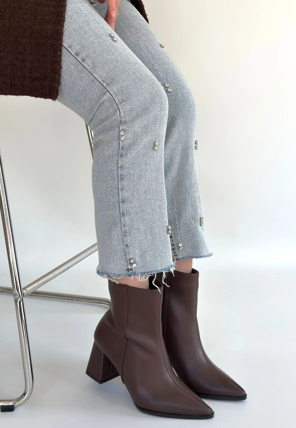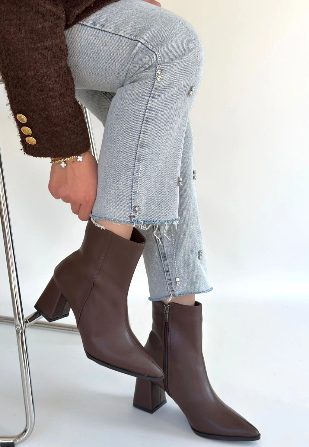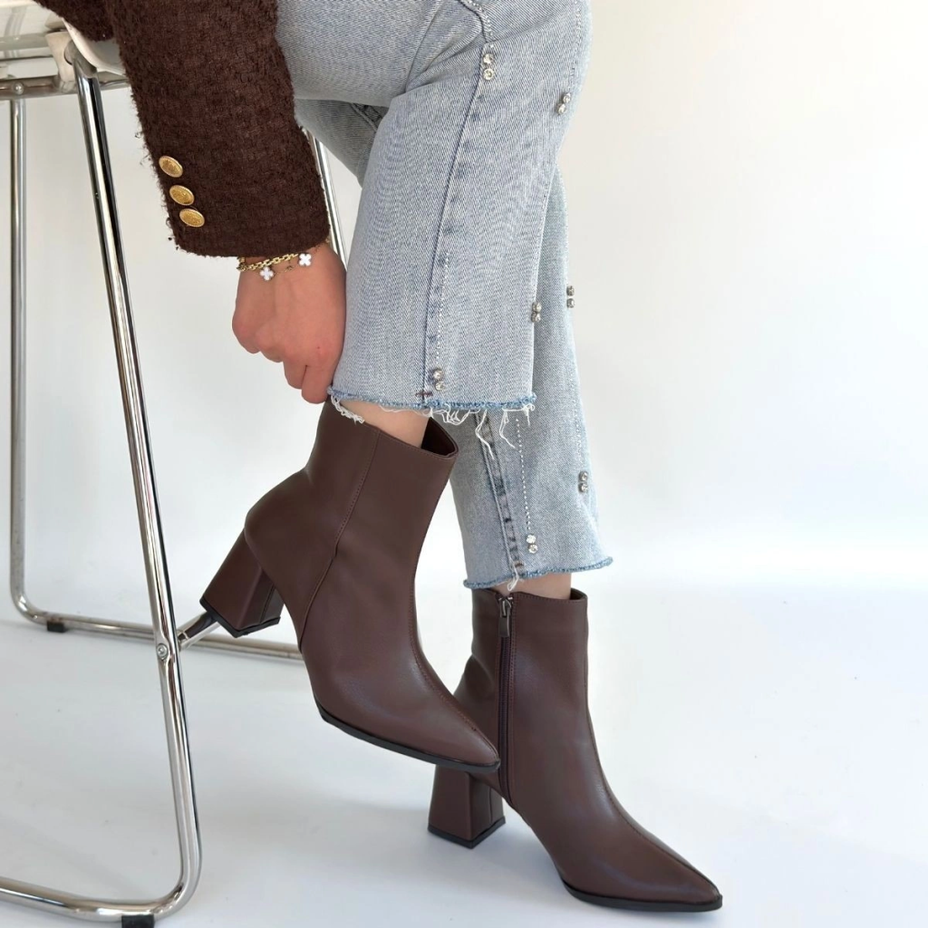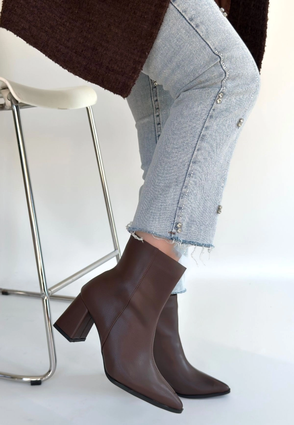 Linma Acı Kahve Cilt Bağcıklı Topuklu Bot