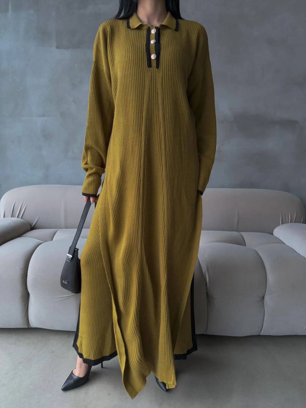 Pantolon yırtmaçlı elbise ikili triko takım yeşil elf