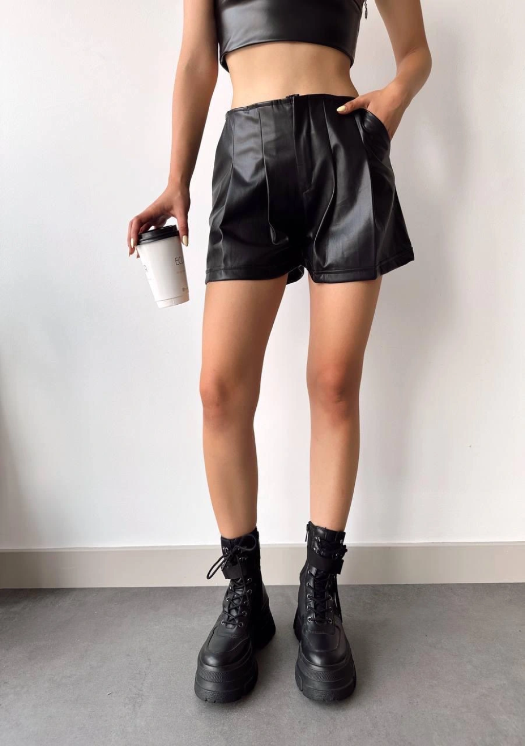Kapaklı kaşe şort etek siyah beyaz kazayağı h261218