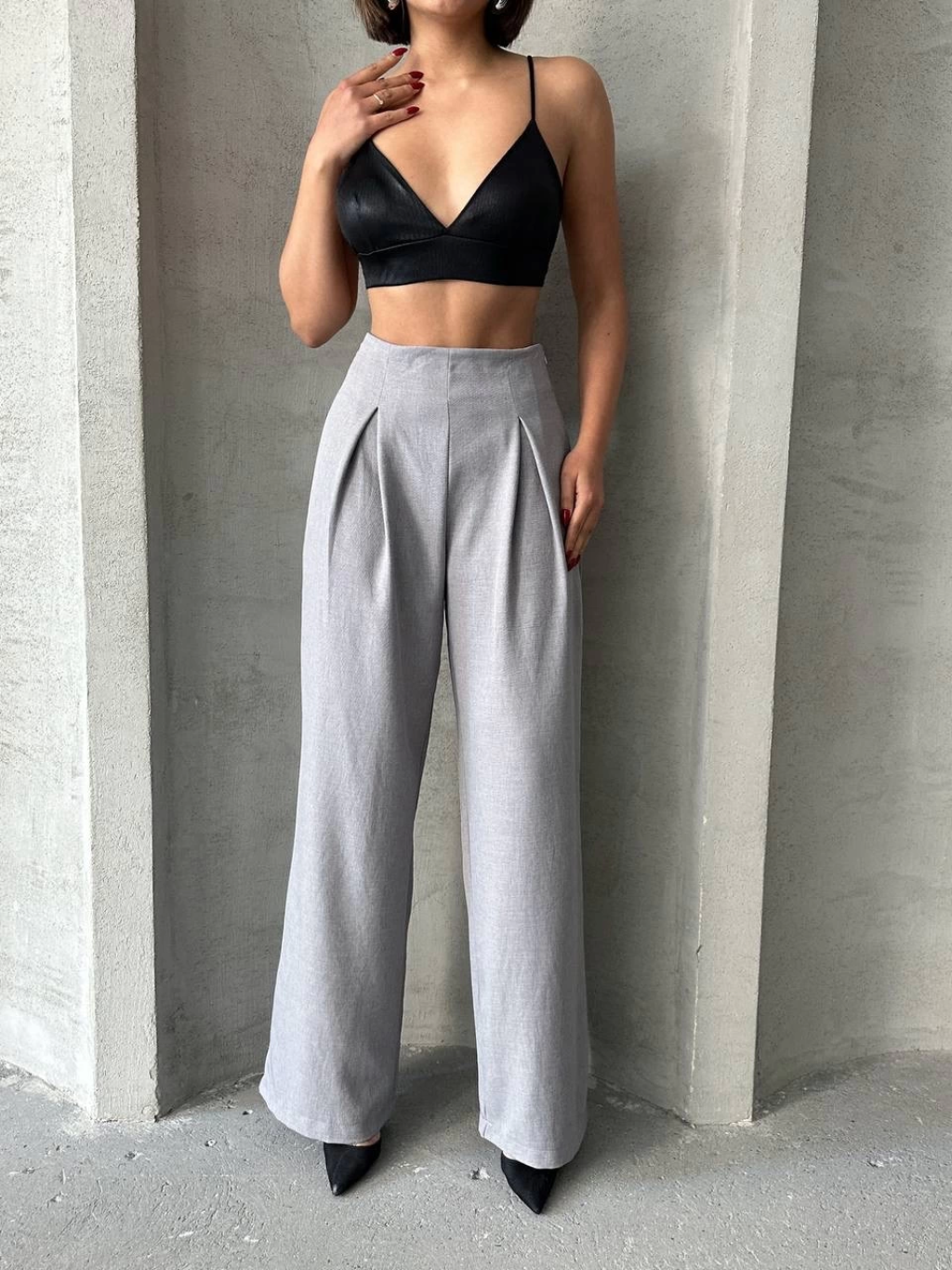 Pileli keten pantolon s255046