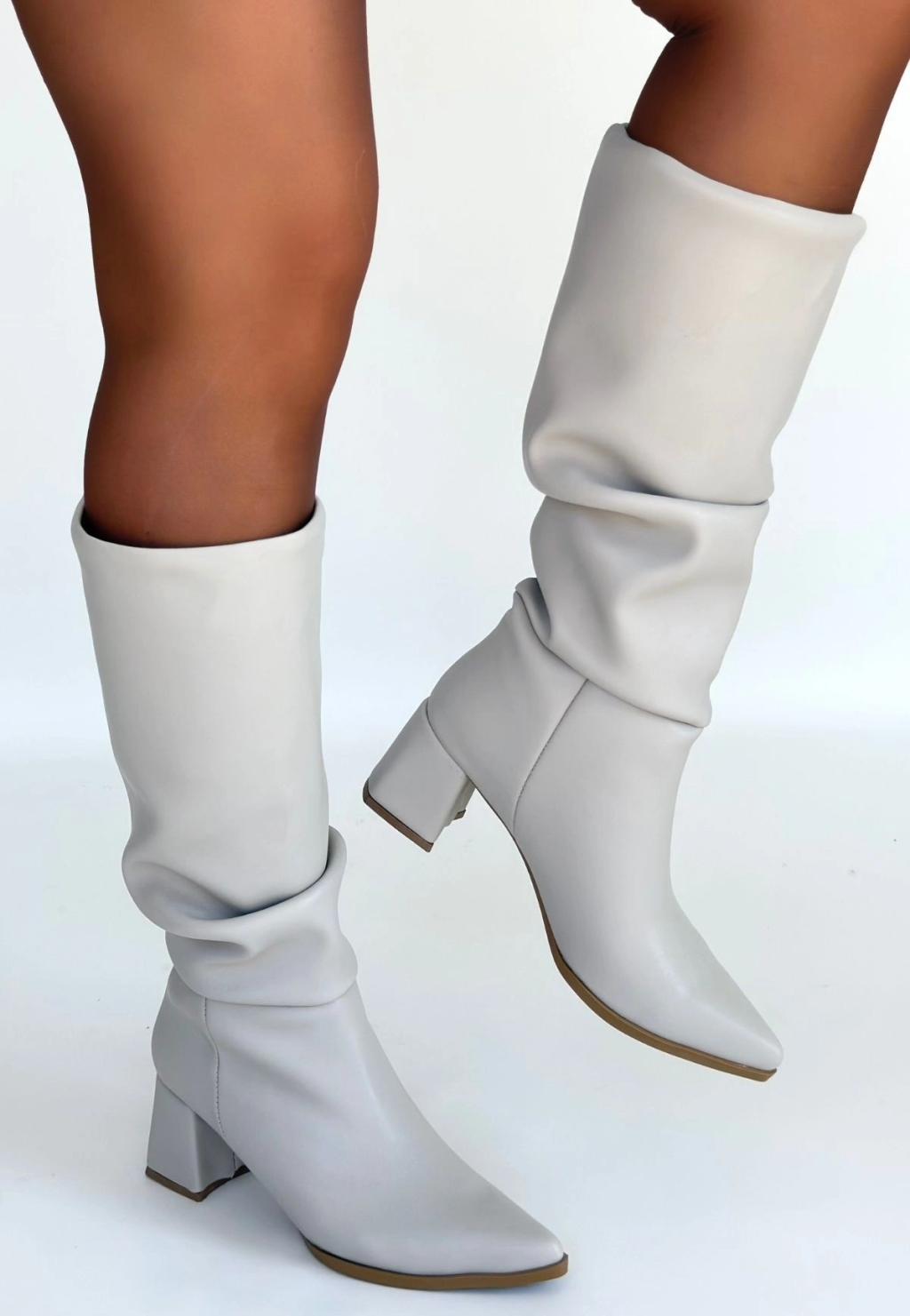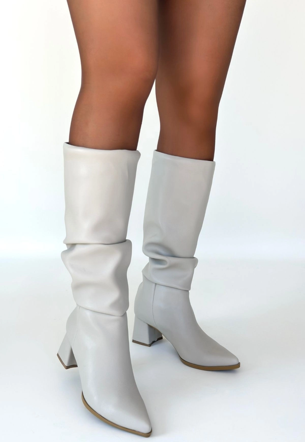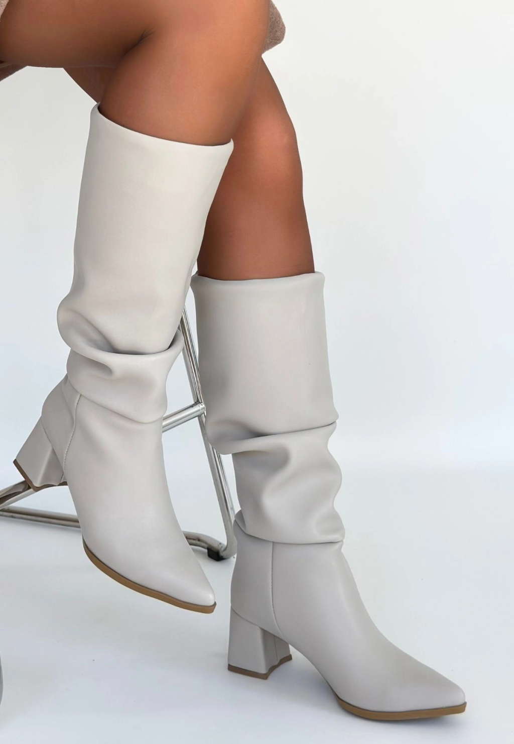 Tiyan Bej Cilt Topuklu Çizme