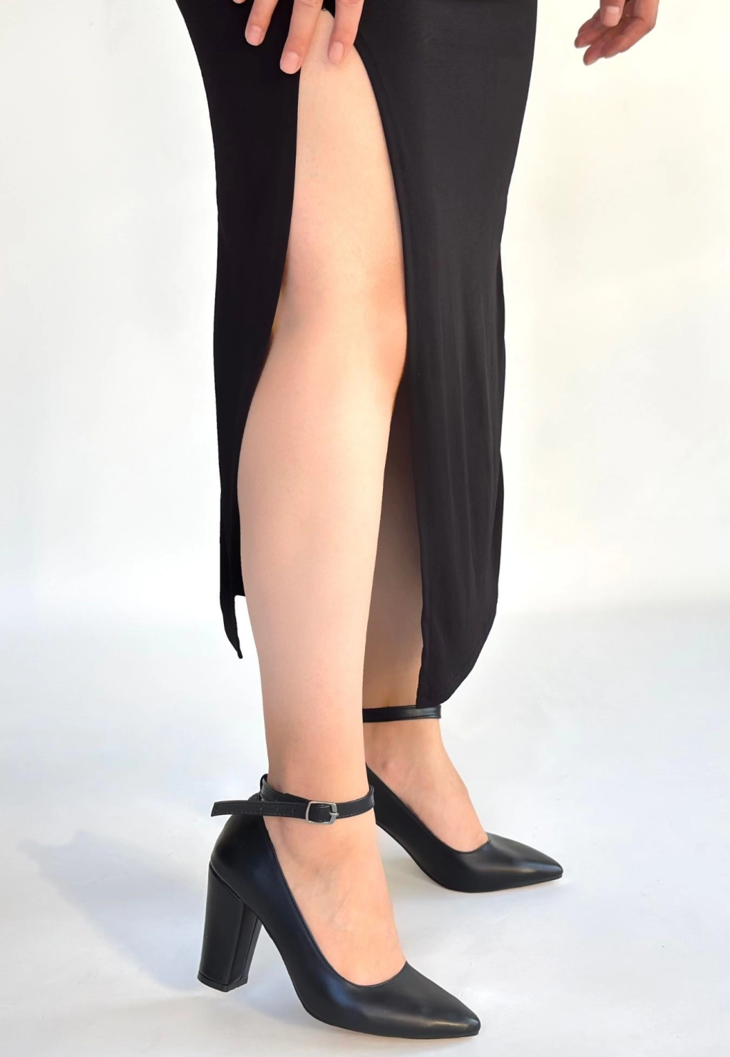 Winar Siyah Cilt Doldu Topuk Ayakkabı