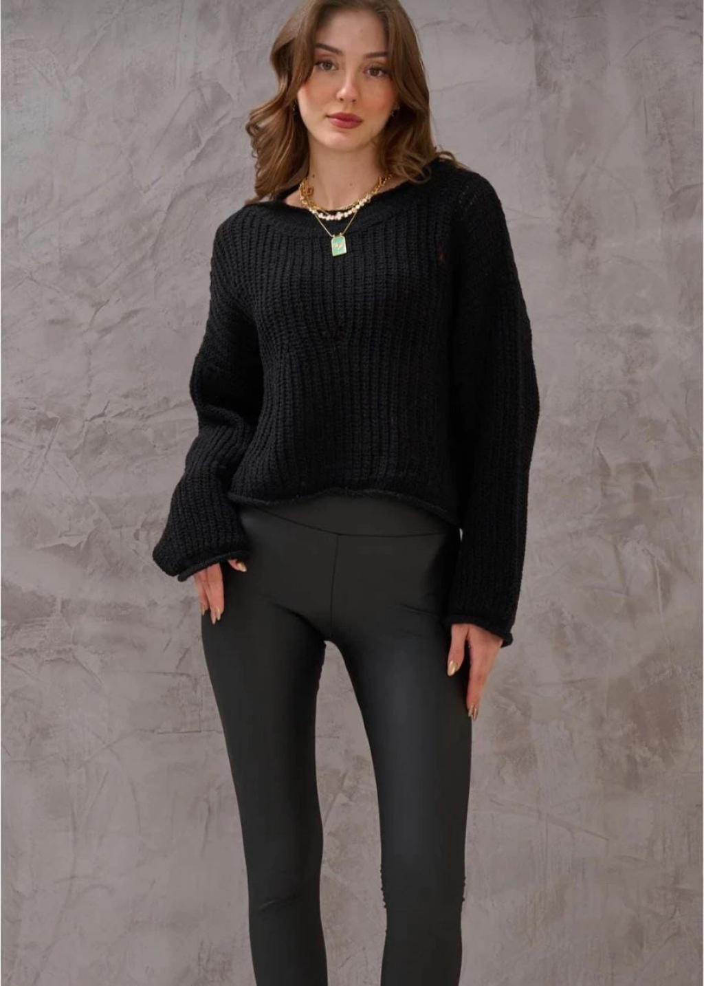Salaş delik detaylı kazak siyah