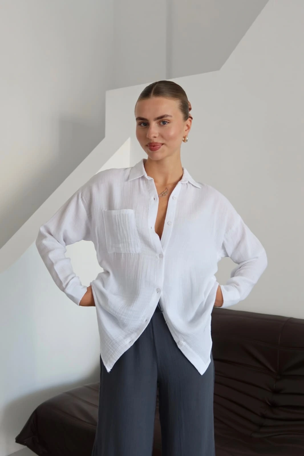 Tek cepli müslin gömlek beyaz pt