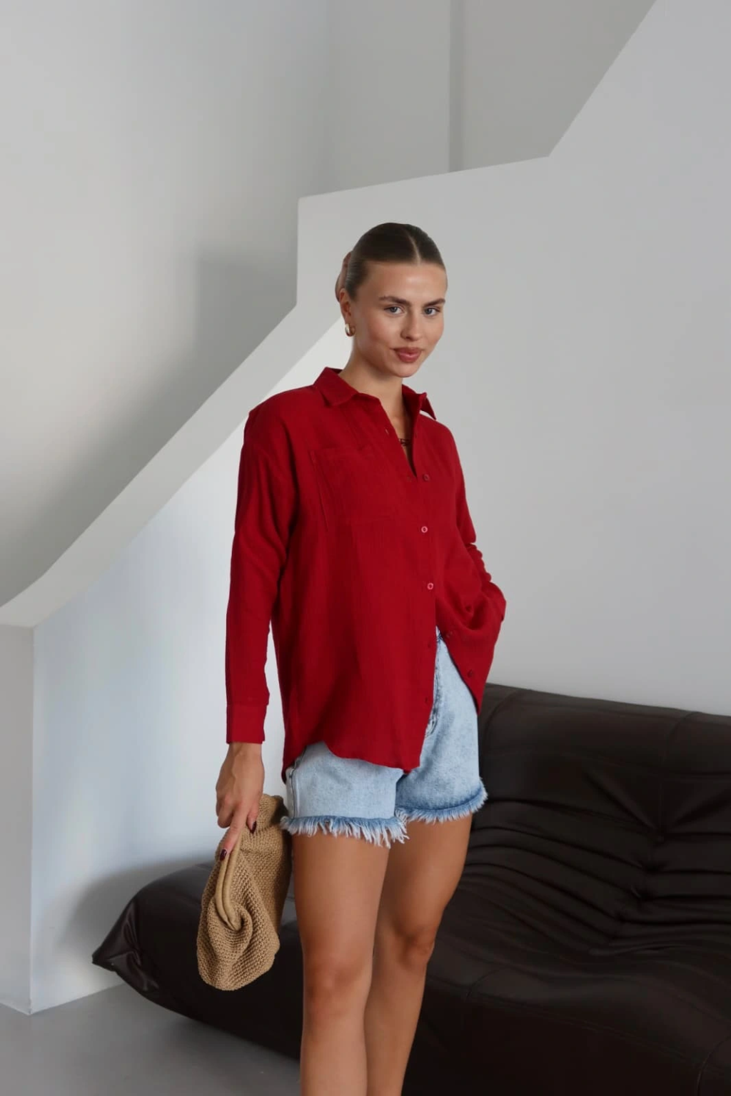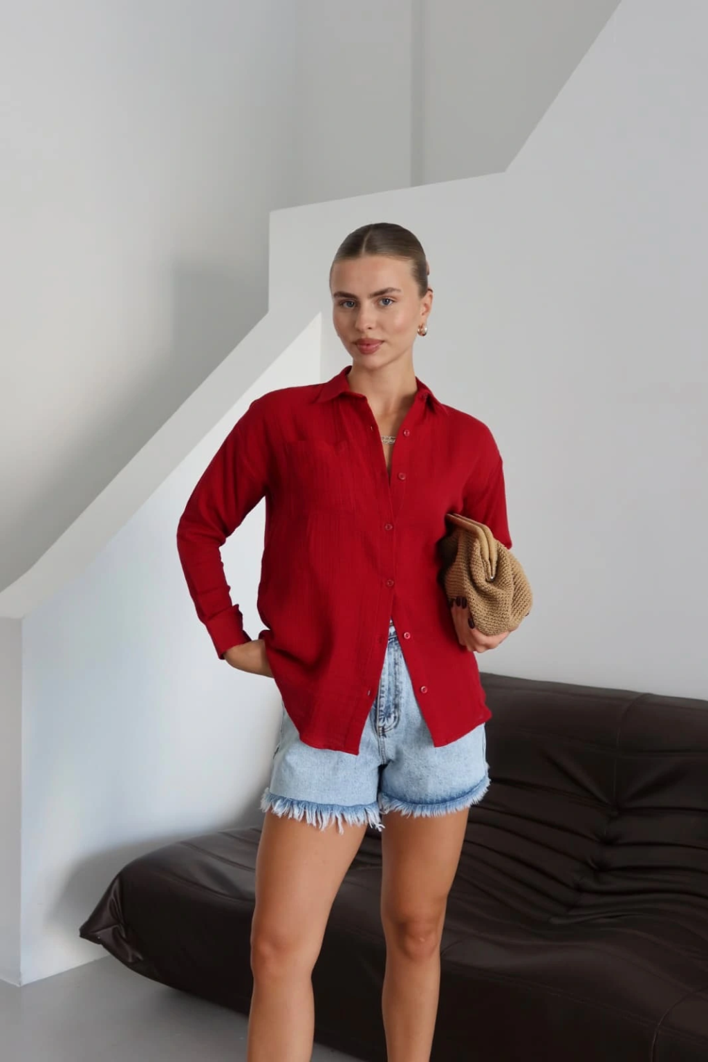 Çift renkli kısa gömlek vizonbeyaz s4021