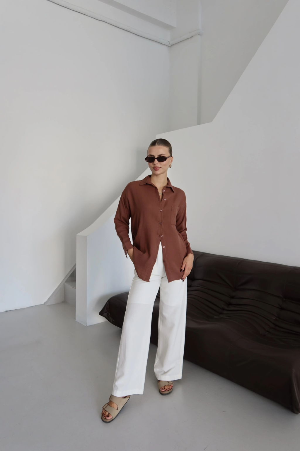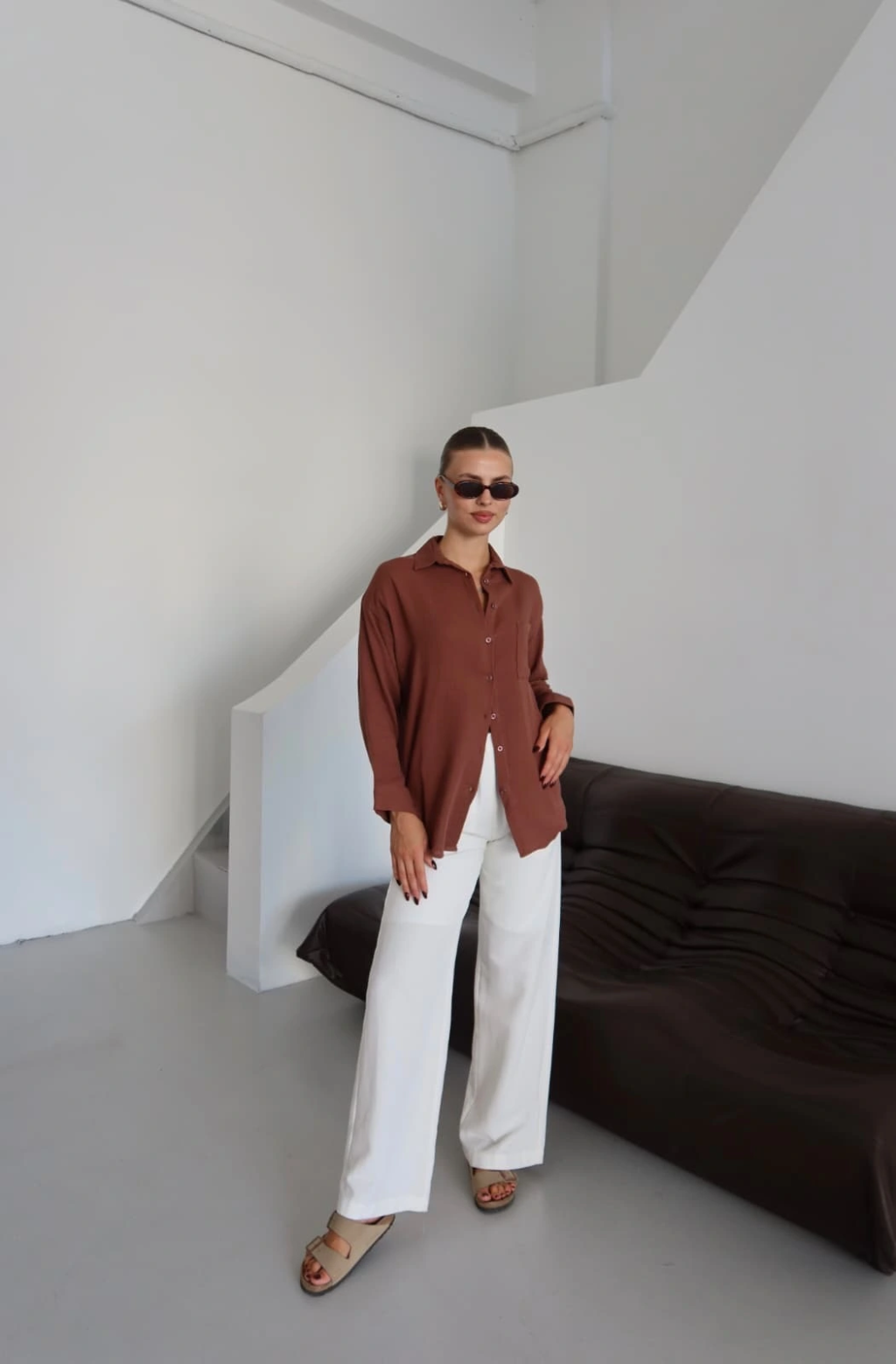 Çift renkli kısa gömlek vizonbeyaz s4021