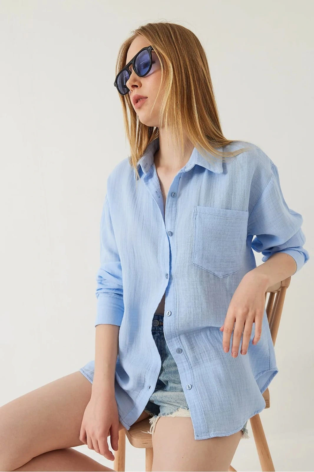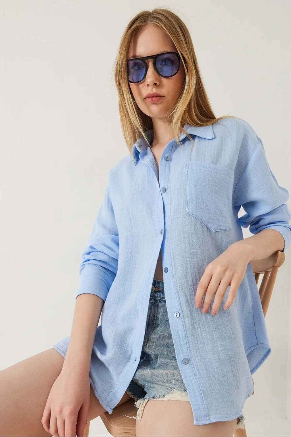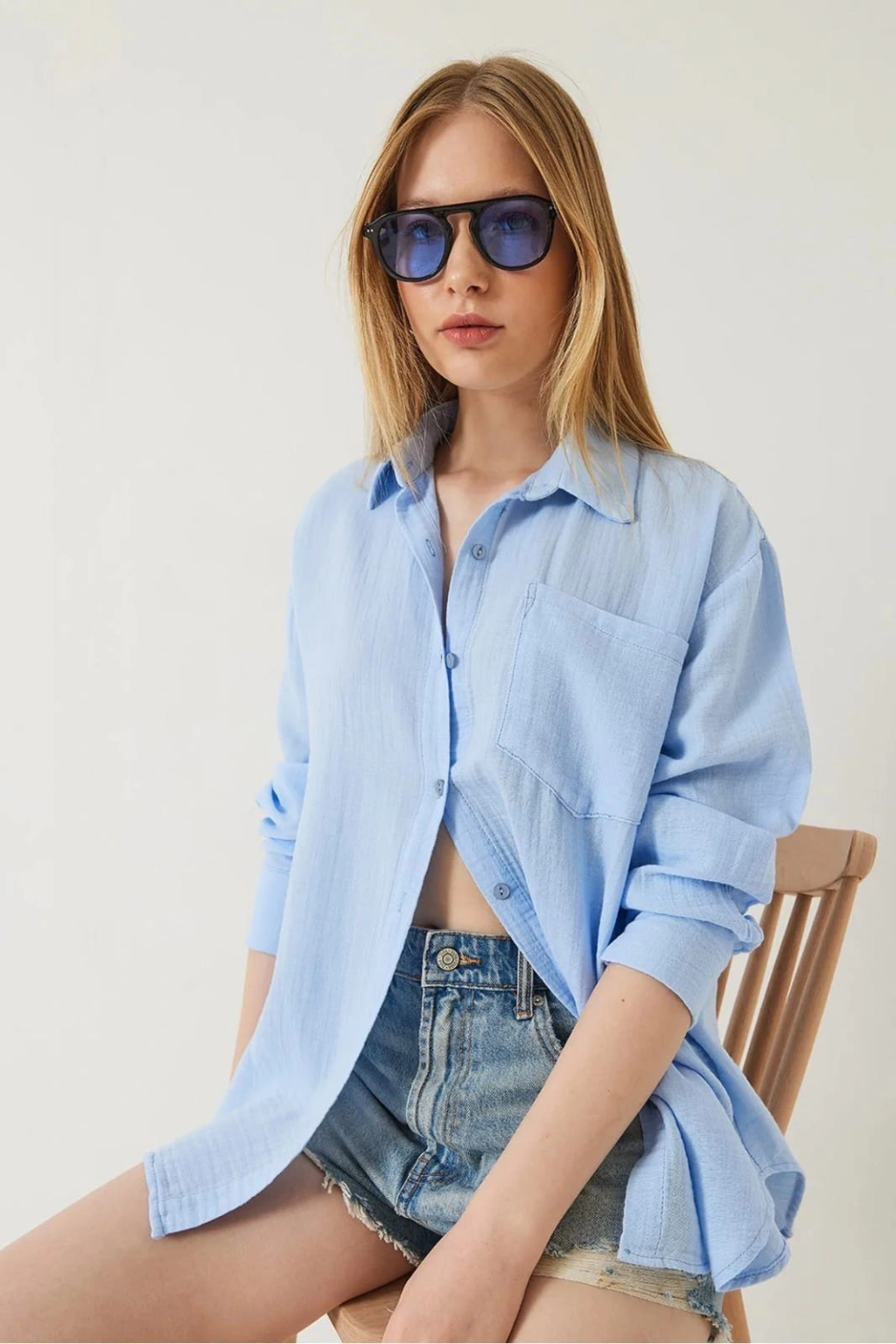 Çift renkli kısa gömlek vizonbeyaz s4021