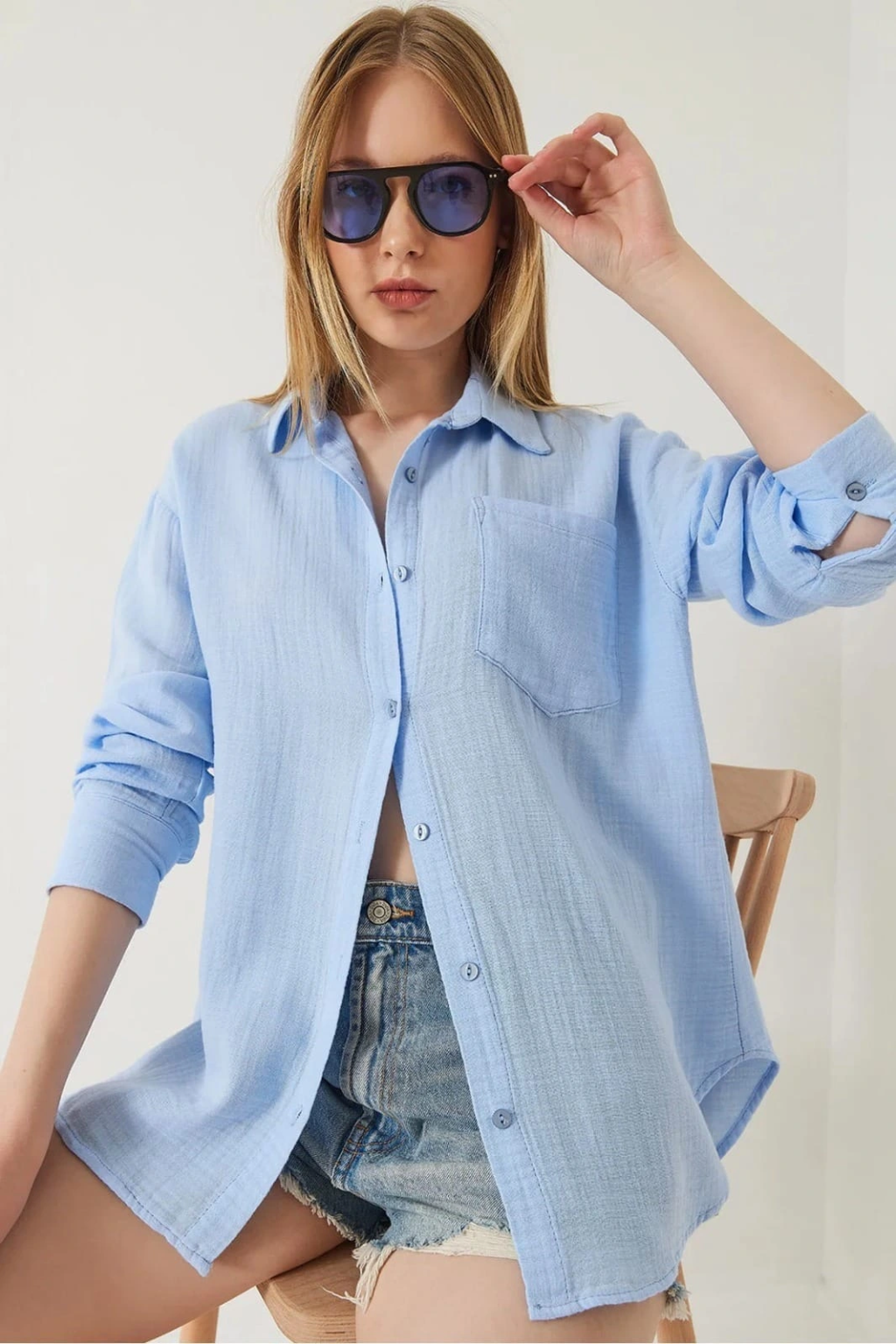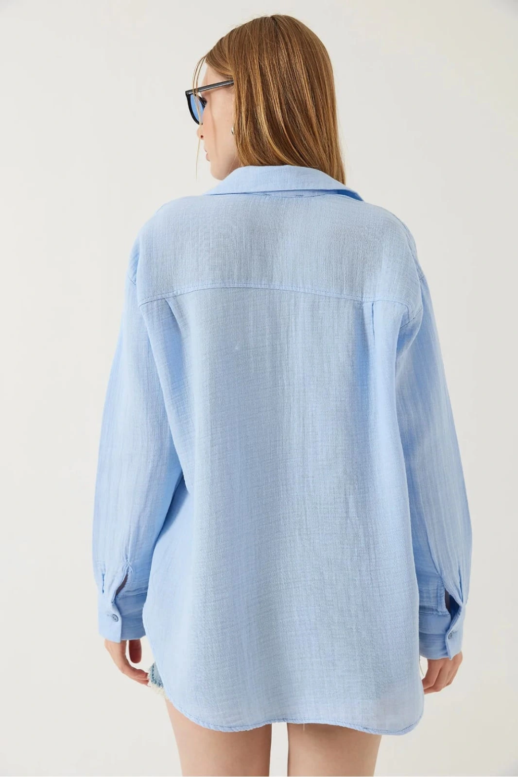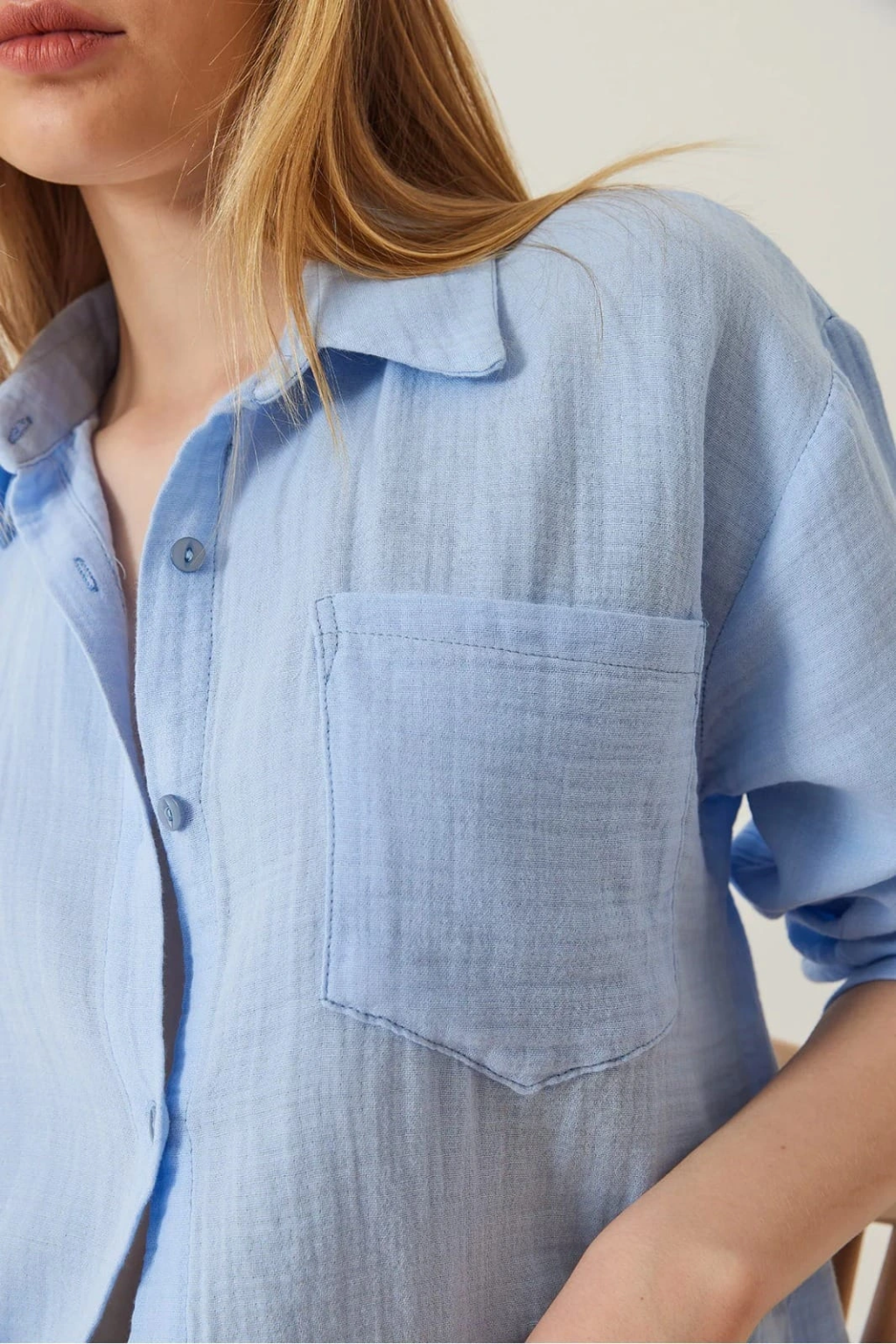 Çift renkli kısa gömlek vizonbeyaz s4021