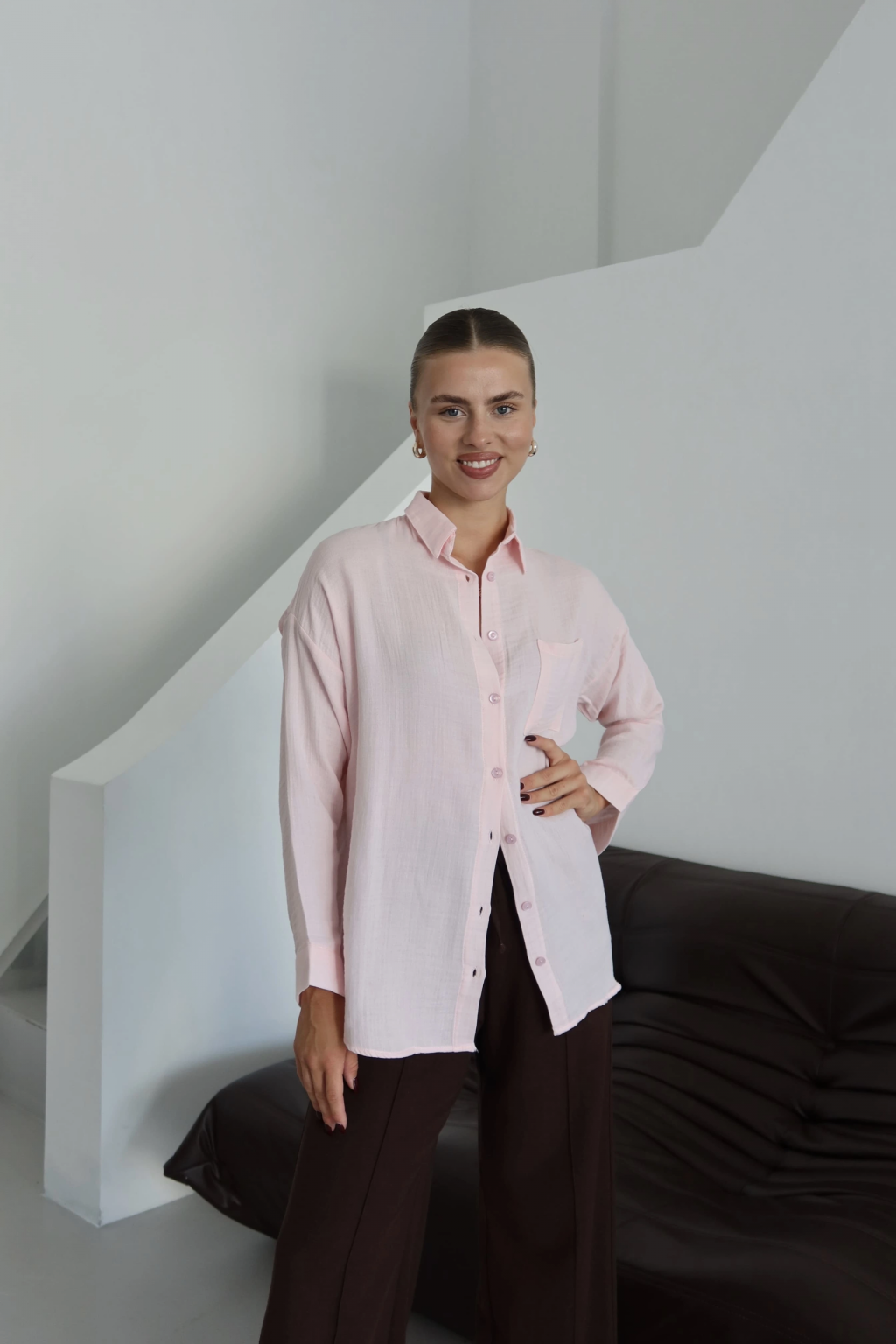 Tek cepli müslin gömlek kahve pt