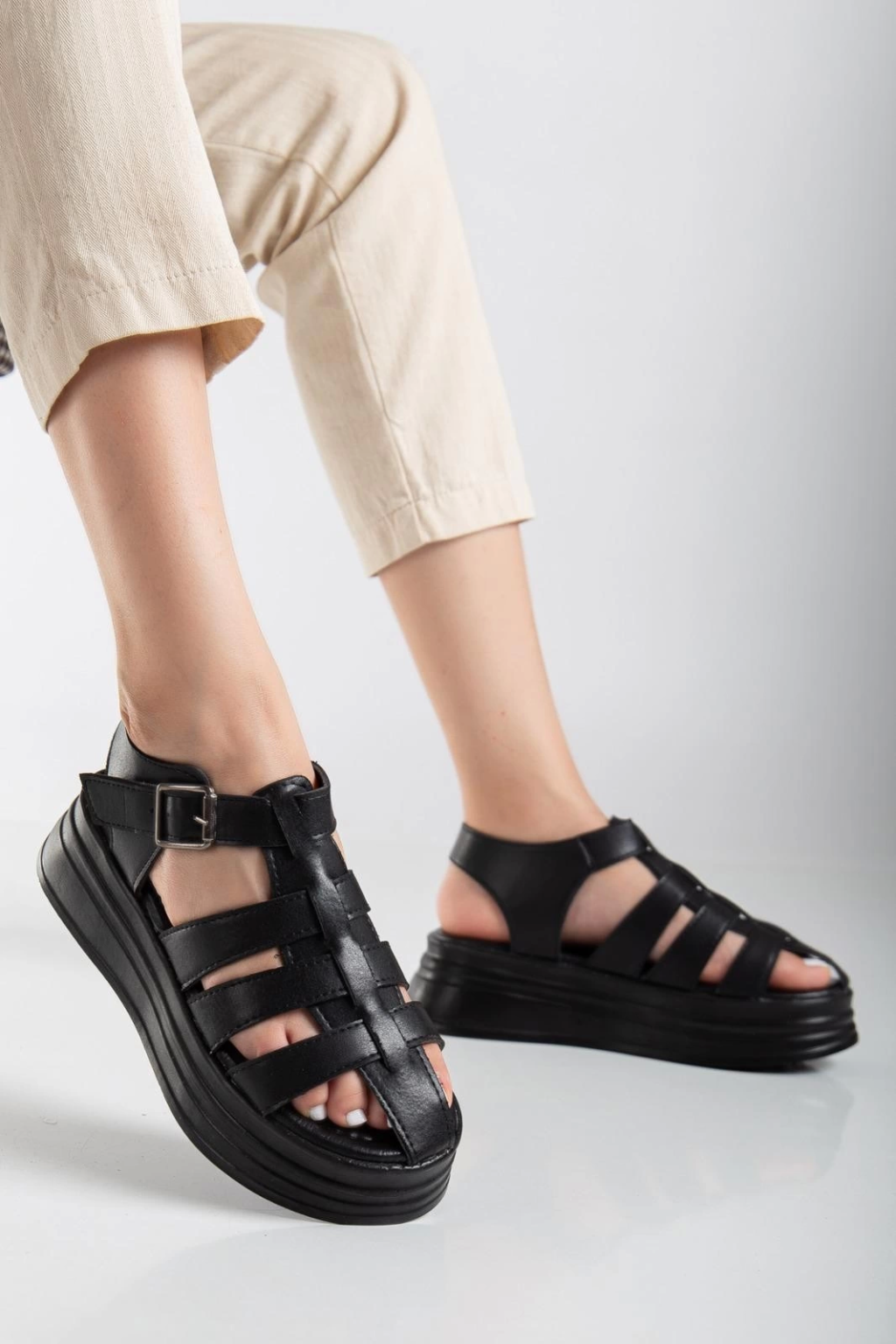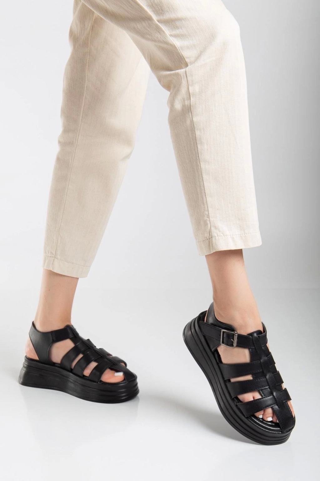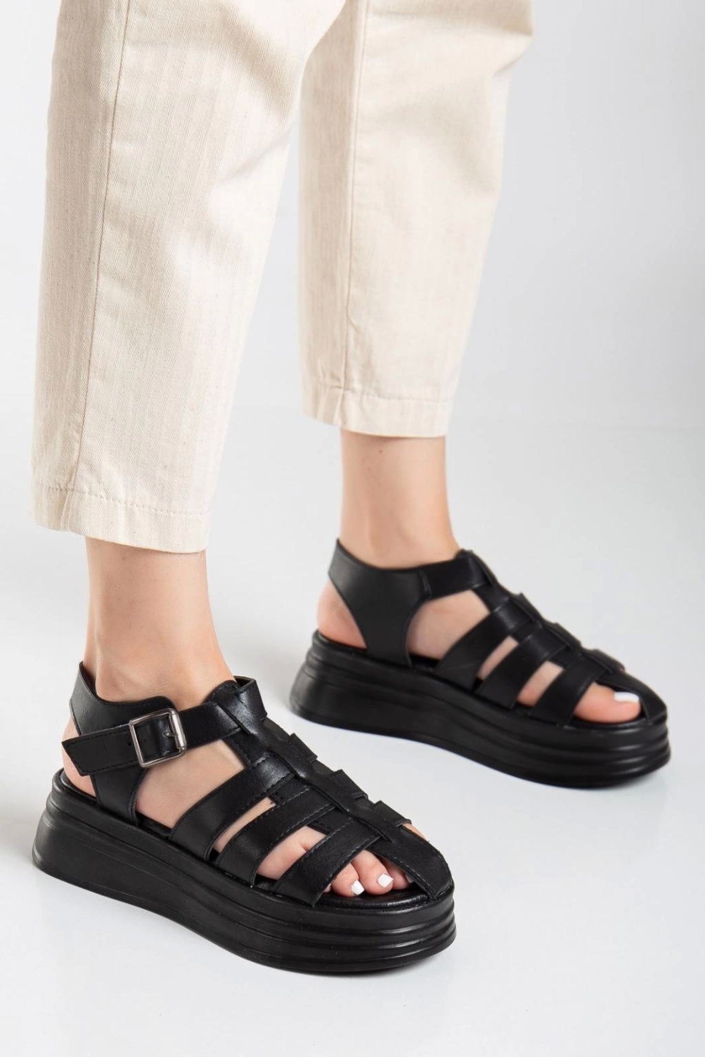 Saide Siyah Cilt Cırt Cırtlı Sandalet