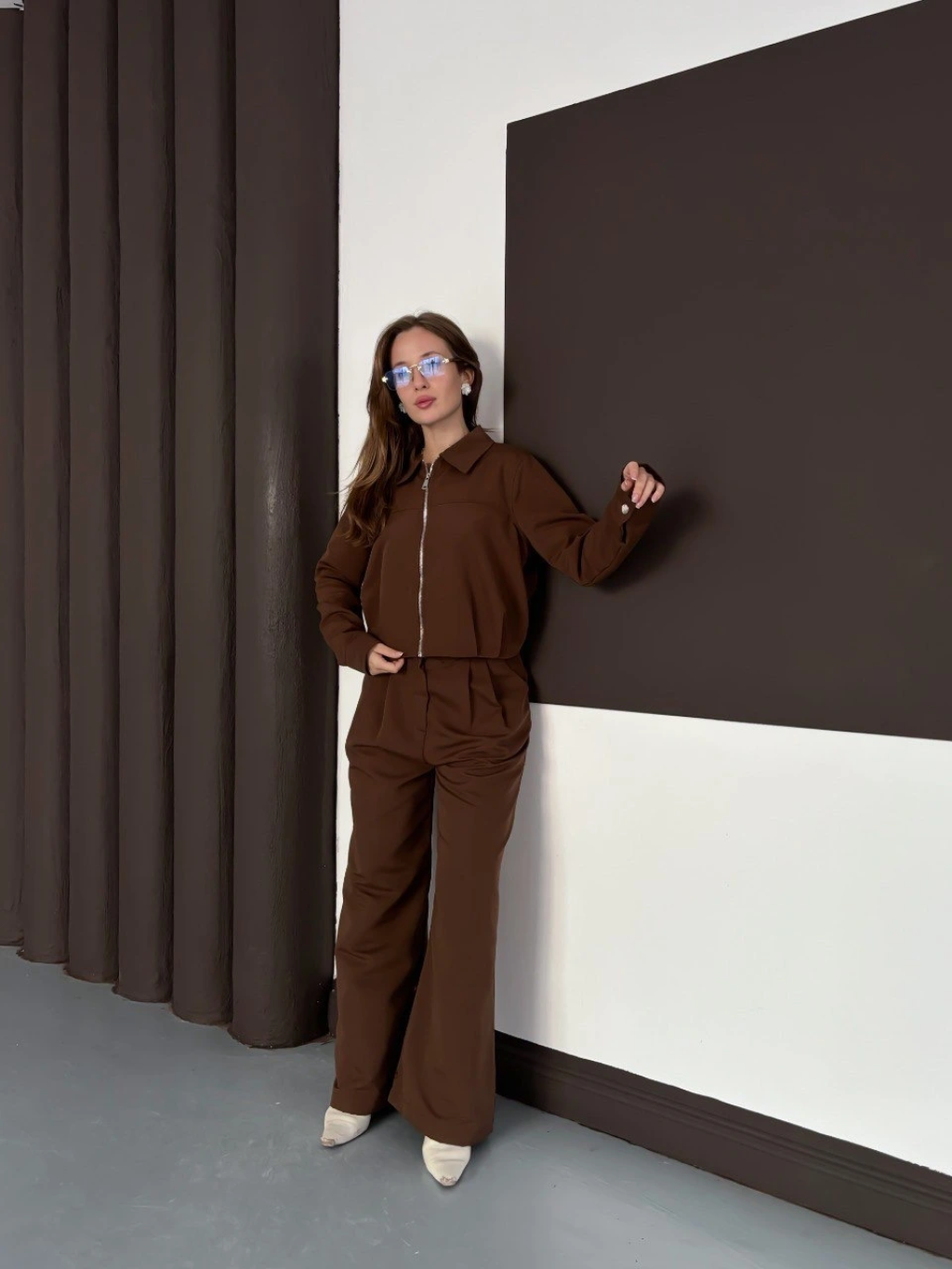 3 iplik içi Şardonlu yarım fermuarlı alt üst takım siyah
